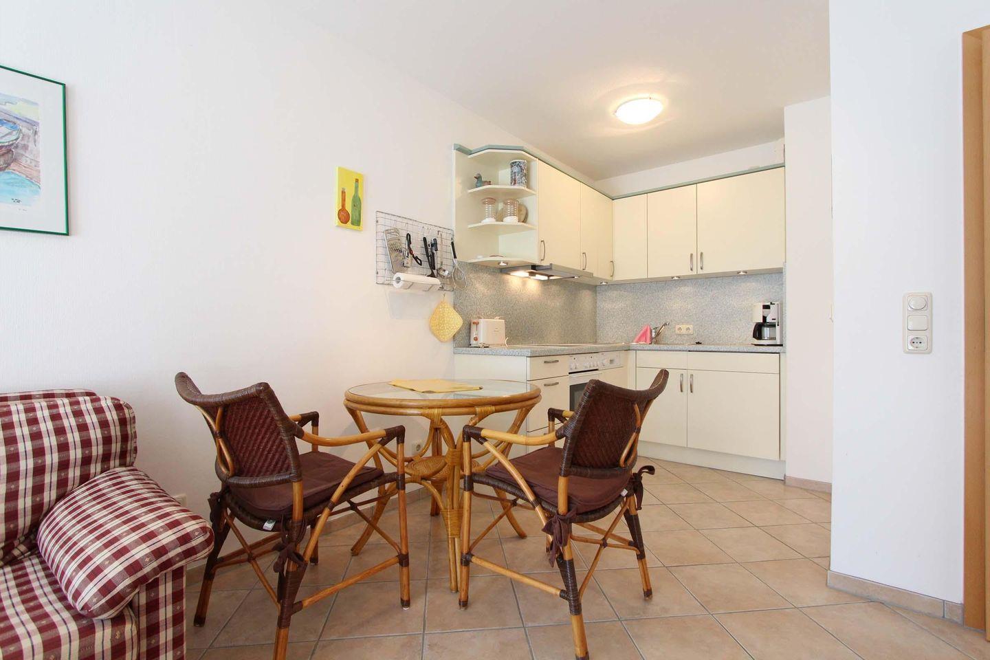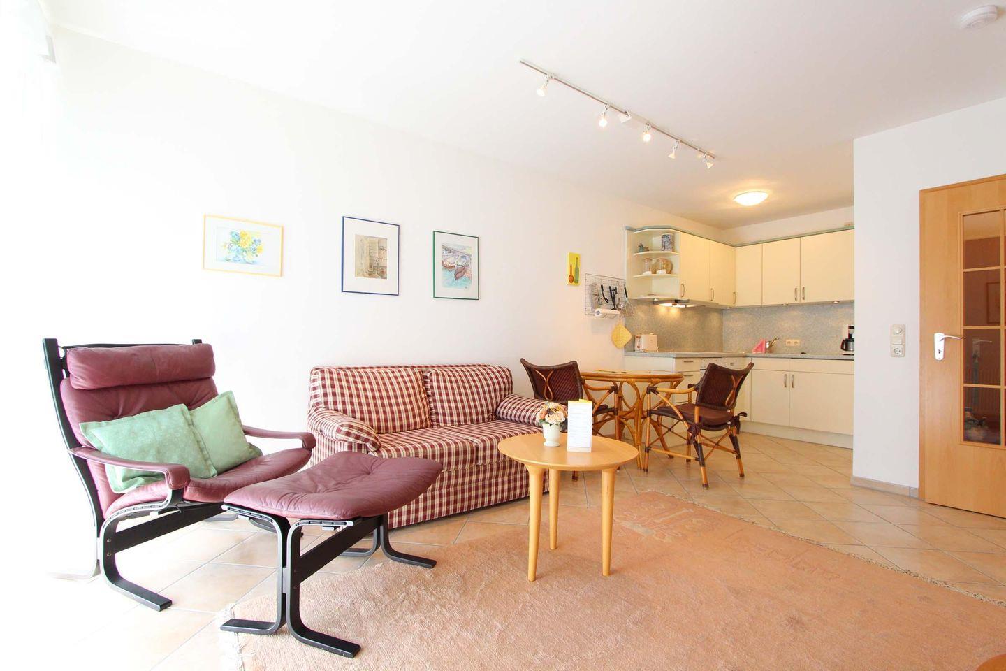 Diese gemütliche Erdgeschosswohnung bietet auf ca. 39 qm Platz für bis zu 2 Personen und ist sehr strandnah gelegen. Der Wohnbereich ist dank einer großen Fensterfront lichtdurchflutet und einladend. Hier befinden sich auch der Essbereich und eine voll ausgestattete Küchenzeile mit Backofen und Geschirrspülmaschine. Das separate Schlafzimmer verfügt über ein bequemes Doppelbett und einen Kleiderschrank. Das helle Duschbad ist mit einem Handtuchheizkörper ausgestattet. Auf der sonnigen Terrasse in Richtung Süd-Osten kann man entspannen. Der Sandstrand von Kellenhusen ist in weniger als 2 Minuten zu Fuß erreichbar. Haustiere sind auf Anfrage und gegen Aufpreis willkommen. Für Fahrräder gibt es einen geräumigen Abstellraum. Gäste können gegen eine Gebühr ein Wäschepaket hinzubuchen.