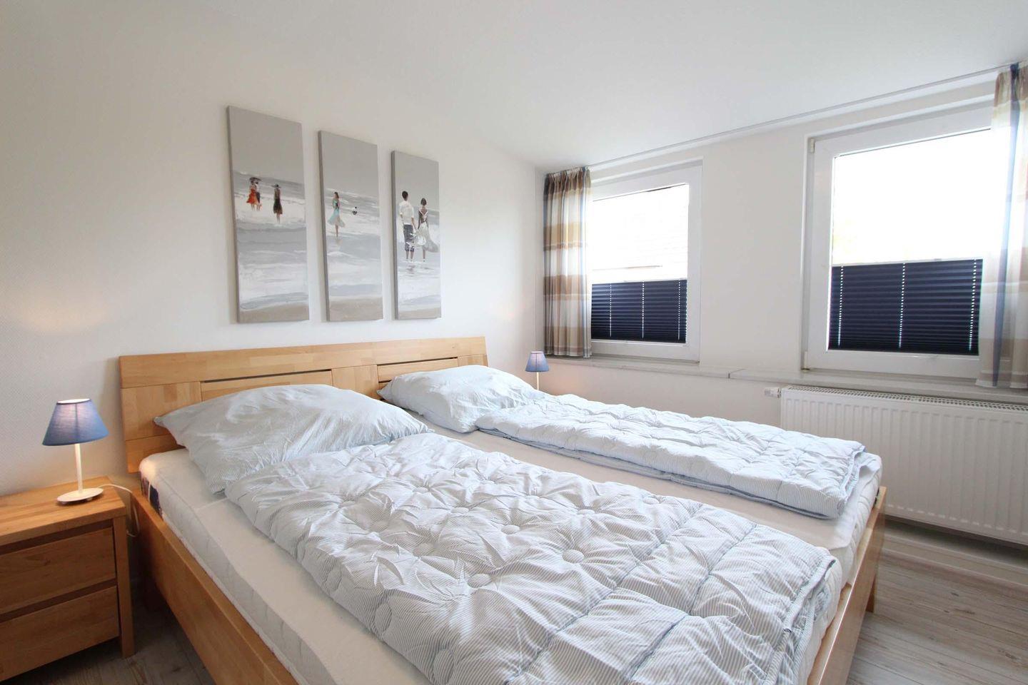 Das Haus Heckenrose bietet mehrere Wohnungen, zum einen diese ca. 55 qm große Obergeschosswohnung für max. 4 Personen. Der offene Wohnbereich ist sehr geschmackvoll, schick und gemütlich eingerichtet. Die Sofaecke lädt zum entspannen und erholen ein. Die sehr schicke und hochwertige Küche ist gemeinsam mit dem Esstisch im Wohnbereich integriert. Das große Ceranfeld mit Dunstabzugshaube, der Geschirrspüler, der Backofen und zusätzlich zur Kaffeemaschine auch eine Senseo-Maschine runden die schicke Küche ab. Das große Schlafzimmer bietet ein schickes und hochwertiges Massivholz-Doppelbett (2 Matratzen á 0,90x2,00m), das kleine Schlafzimmer unterm Dach ist mit zwei gemütlichen Einzelbetten (0,90x2,00m) ausgestattet. Für die ganz kleinen Gäste gibt es ein Kinder-Reisebett, welches allerdings eine selbstmitgebrachte Matratze benötigt. Ebenfalls verfügt die Wohnung über ein schönes Duschbad. Auf dem Balkon mit Ost-Lage kann man ebenfalls entspannen und sich erholen. Außerdem steht der Garten auch allen Gästen des Hauses zur Verfügung. Mitgebrachte Fahrräder können ebenfalls im Garten abgestellt werden. Bis zum Kellenhusenser Sandstrand sind es nur 6 Gehminuten. Sollte das Reisegepäck so gering wie möglich ausfallen, dann ist ein Wäschepaket für den Aufenthalt in Kellenhusen gegen Gebühr einfach buchbar und auch eine Waschmaschine und ein Trockner können gebührenpflichtig in dem Haus genutzt werden.