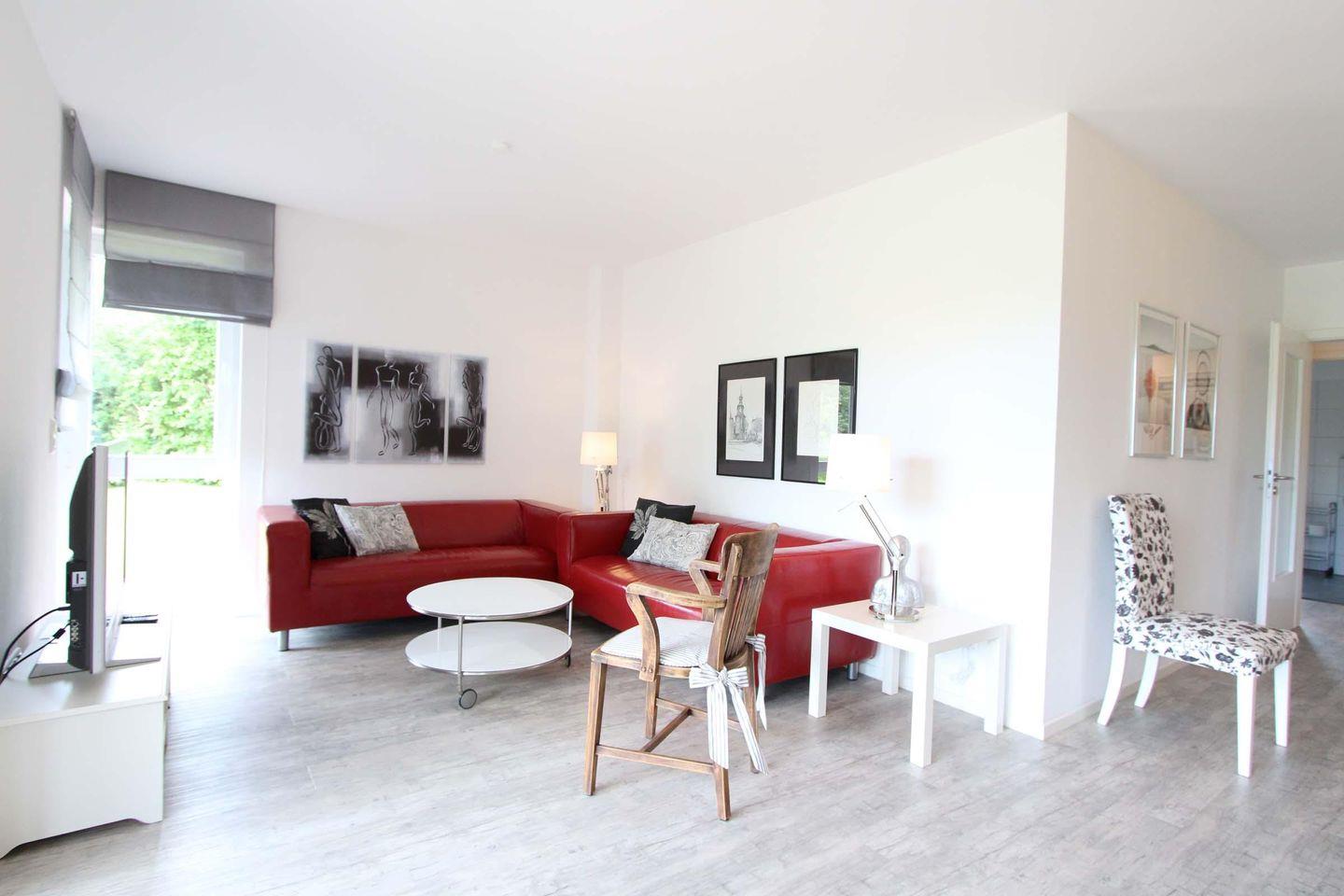 Zwischen Wald und Wellen liegt diese außergewöhnliche Nichtraucherwohnung in ruhiger Lage. Mit ca. 73 qm ist die Erdgeschosswohnung für max. 4 Personen bestens geeignet. Der großzügige Wohnbereich besticht mit der modernen und schicken Ausstattung. Die stylischen, roten Sofas laden zum abendlichen Entspannen nach dem Strandspaziergang ein und der Essbereich kann auch für gemeinsame Spieleabende genutzt werden. Direkt angrenzend ist die moderne, hochwertige Küche. Diese ist bestens ausgestattet mit einem Geschirrspüler, einem Gefrierfach im Kühlschrank, Backofen, Mikrowelle und Kaffeemaschine und Co. Außerdem verfügt die Wohnung über zwei separate Schlafzimmer, eines mit Doppelbett (2 Matratzen á 0,90x2,00m) und eines mit zwei Einzelbetten (Matratzen á 0,90x2,00m), wobei das Zimmer mit den zwei Betten auch über einen zusätzlichen Fernseher verfügt.Das helle Fensterbadezimmer mit der Duschkabine verfügt ebenfalls über eine Waschmaschine, welche genutzt werden kann. Zur Verdunkelung oder für die Sicherheit können alle Fenster der Wohnung auch mit Rollläden verschlossen werden.Ein Highlight der Wohnung ist der sonnige Süd-West-Balkon angrenzend an die Grünfläche der Wohnanlage. Sollte aber nicht nur die Terrasse genutzt werden sollen, dann ist man fußläufig innerhalb von 5 Minuten am schönen Sandstrand des Ostseebades. An geplante Fahrradtouren wurde auch gedacht, denn mitgebrachte Fahrräder können sicher im Fahrradabstellraum untergebracht werden. Auch dem Urlaub mit dem Haustier steht generell nichts im Wege, denn nach Rücksprache und gegen Aufpreis sind Haustiere gestattet. Sollte das Reisegepäck so gering wie möglich ausfallen, dann ist ein Wäschepaket für den Aufenthalt in Kellenhusen gegen Gebühr einfach buchbar.