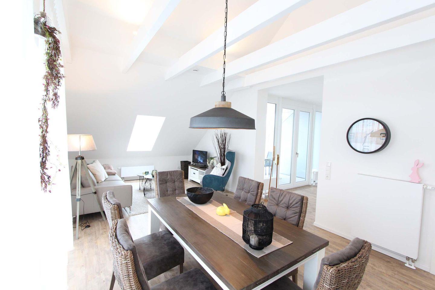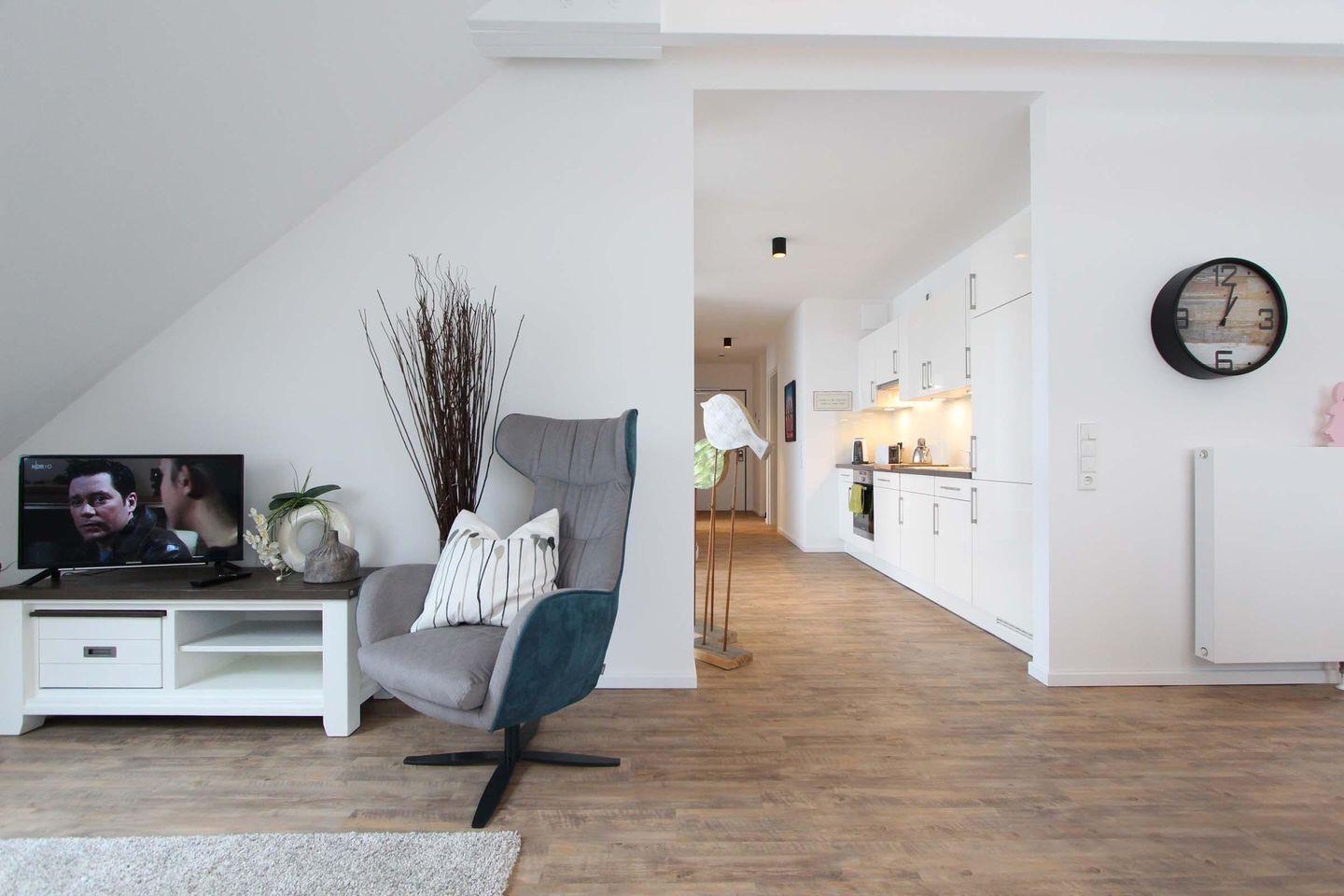 Diese stilvolle Nichtraucher-Ferienwohnung mit ca. 89 m² befindet sich im 2. Obergeschoss des „KellenHus“ in Kellenhusen und ist ideal für bis zu 4 Personen geeignet. Der großzügige Wohnbereich überzeugt mit maritimer und rustikaler Einrichtung, gemütlicher Sofaecke, Essbereich sowie offener, hochwertig ausgestatteter Küche mit Geschirrspüler und Backofen.