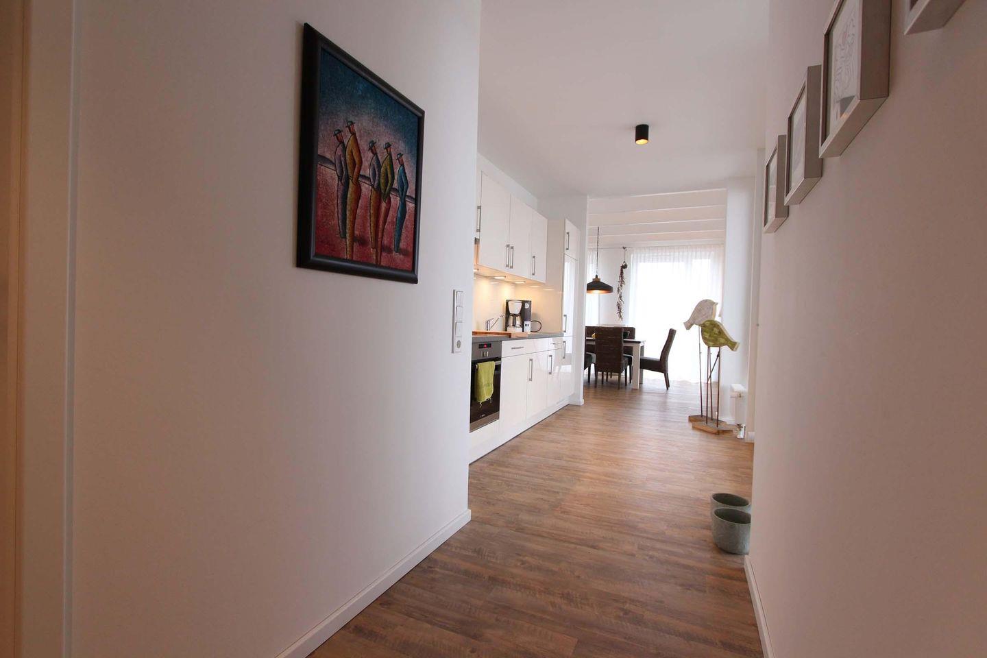 Stilvolle 89 m² große Nichtraucherwohnung für 4 Personen im 2. OG des „KellenHus“. Maritimer Wohnbereich mit offener Küche, zwei Schlafzimmern, modernem Bad mit Dusche & Wanne sowie Ostbalkon. Strand in 5 Min. erreichbar. Kinderbett & Hochstuhl vorhanden, WLAN, Waschmaschine & Trockner nutzbar. Haustiere nicht erlaubt. Hinweis: Baustelle in der Nachbarschaft ab Okt. 2024.
