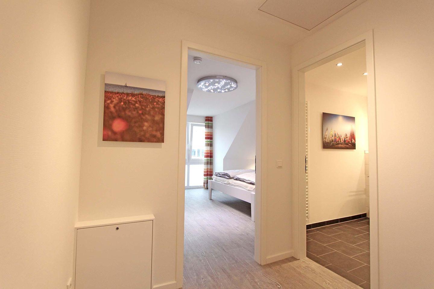 Dieses großzügige und stilvolle Reihenmittelhaus erstreckt sich mit ca. 75 qm auf zwei Ebenen. Ein sehr schicker, maritim, moderner Wohnbereich mit einer sehr hochwertigen Einrichtung lädt zum entspannen und wohlfühlen ein. Mit Sofaecke, Essbereich und offener Küchenzeile ist hier alles bestens vereint. Die Küche ist mit einem Multifunktionsofen (integrierte Mikrowelle und Grillfunktion) und einer Geschirrspülmaschine ausgestattet. Ansonsten ist im Erdgeschoss noch ein Gäste-WC und ein Hauswirtschaftsraum mit Waschmaschine und Trockner. Im Obergeschoss befinden sich dann 2 separate Schlafzimmer und ein Badezimmer. Das erste Schlafzimmer ist mit einem Doppelbett (2 Matratzen á 0,90x2,00m), einem geräumigen Kleiderschrank und einem Fernseher eingerichtet, wobei das zweite Schlafzimmer dann mit zwei Einzelbetten (0,90x2,00m) eingerichtet ist. Generell ist alles mit sehr viel liebe zum Detail eingerichtet und dekoriert. Die dazugehörige Terrasse hat eine schöne und sonnige Süd-West-Lage und lädt ebenfalls zum verweilen und entspannen ein. Das Haus "Merlin" liegt nur 8 Gehminuten vom Strand entfernt und auch dem Urlaub mit dem Haustier steht generell nichts im Wege, denn nach Rücksprache und gegen Aufpreis sind Haustiere gestattet. Sollte das Reisegepäck so gering wie möglich ausfallen, dann ist ein Wäschepaket für den Aufenthalt in Kellenhusen gegen Gebühr einfach buchbar.