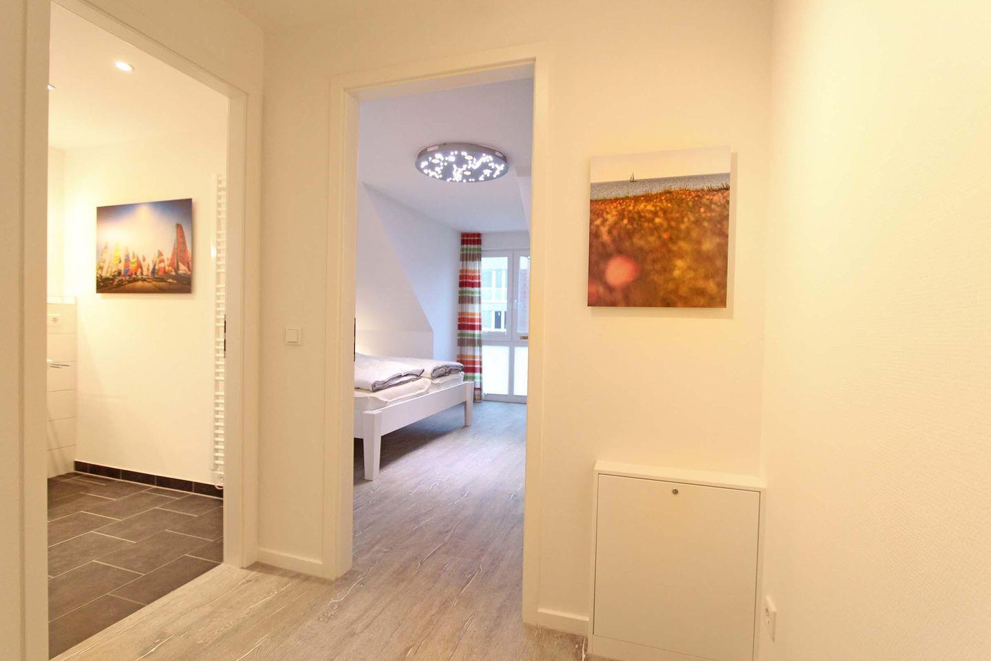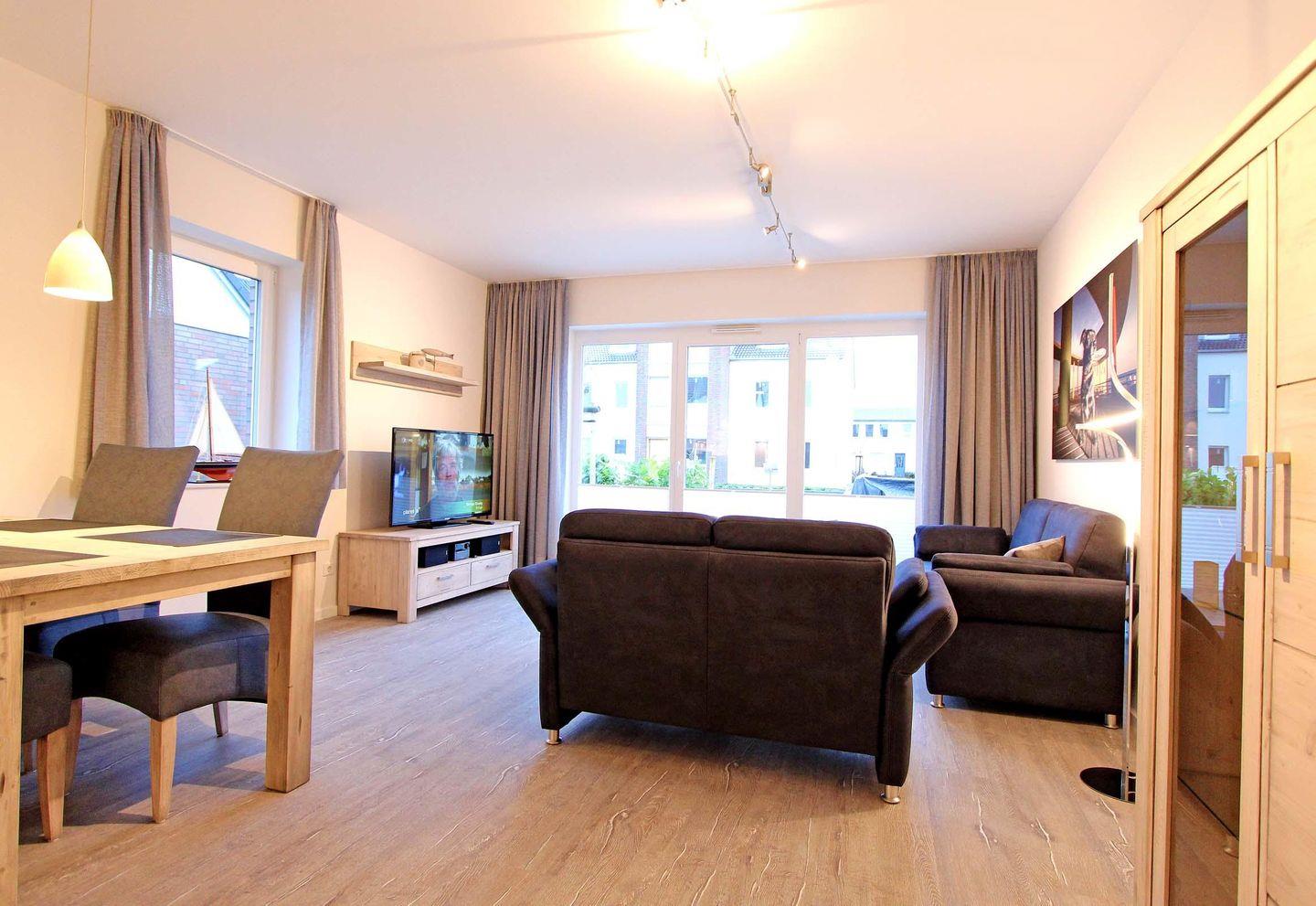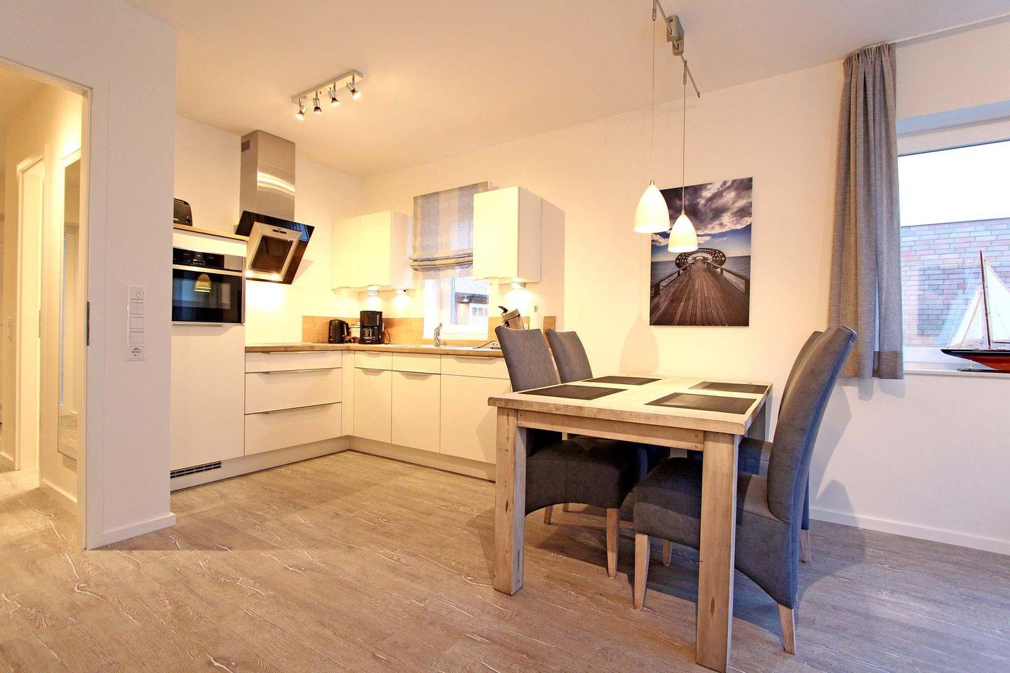 Dieses großzügige und stilvolle Reihenendhaus erstreckt sich mit ca. 75 qm auf zwei Ebenen. Ein sehr schicker, maritim, moderner Wohnbereich mit einer sehr hochwertigen Einrichtung lädt zum entspannen und wohlfühlen ein. Mit Sofaecke, Essbereich und offener Küchenzeile ist hier alles bestens vereint. Die Küche ist mit einem Multifunktionsofen (integrierte Mikrowelle und Grillfunktion) und einer Geschirrspülmaschine ausgestattet. Ansonsten ist im Erdgeschoss noch ein Gäste-WC und ein Hauswirtschaftsraum mit Waschmaschine und Trockner. Im Obergeschoss befinden sich dann 2 separate Schlafzimmer und ein Badezimmer. Das erste Schlafzimmer ist mit einem Doppelbett (2 Matratzen á 0,90x2,00m), einem geräumigen Kleiderschrank und einem Fernseher eingerichtet, wobei das zweite Schlafzimmer dann mit zwei Einzelbetten (0,90x2,00m) eingerichtet ist. Generell ist alles mit sehr viel liebe zum Detail eingerichtet und dekoriert. Die dazugehörige Terrasse hat eine schöne und sonnige Süd-West-Lage und lädt ebenfalls zum verweilen und entspannen ein. Das Haus "Merlin" liegt nur 8 Gehminuten vom Strand entfernt und auch dem Urlaub mit dem Haustier steht generell nichts im Wege, denn nach Rücksprache und gegen Aufpreis sind Haustiere gestattet. Sollte das Reisegepäck so gering wie möglich ausfallen, dann ist ein Wäschepaket für den Aufenthalt in Kellenhusen gegen Gebühr einfach buchbar.