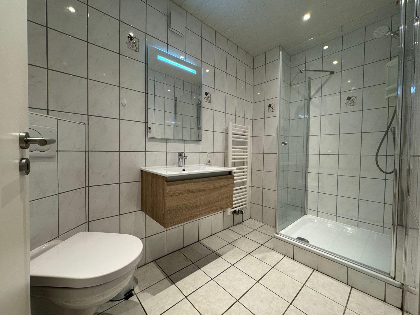 Das innenliegende Badezimmer bietet eine praktische Duschkabine, einen Handtuchheizkörper und ausreichend Platz für Ihre Wohlfühlmomente.