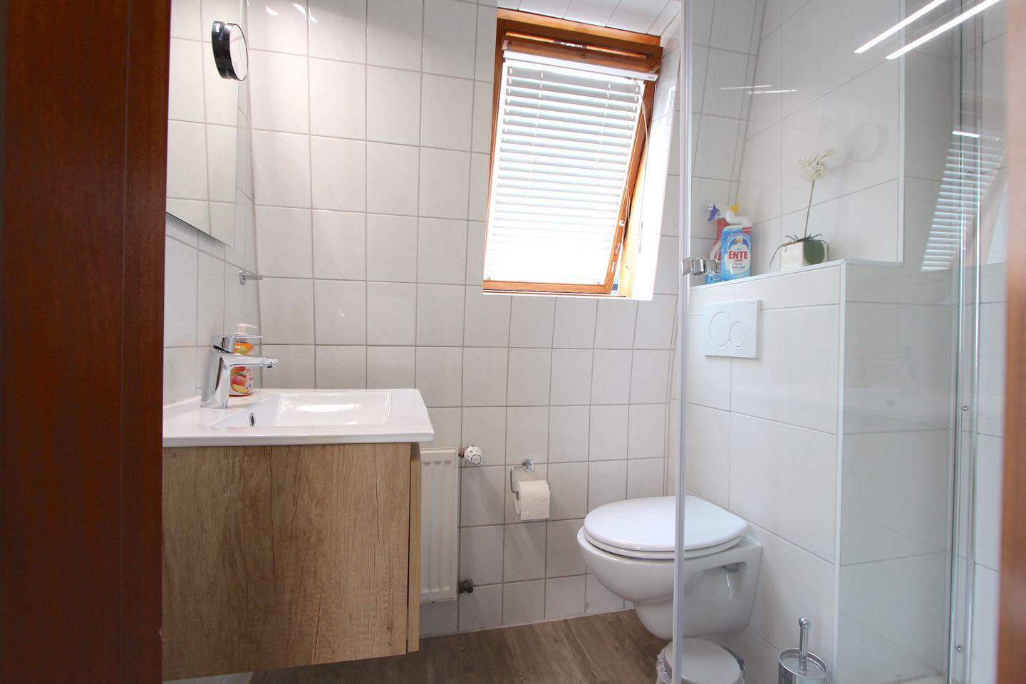 Das Tageslicht-Badezimmer ist hell und freundlich gestaltet und mit einer Duschkabine sowie einem Fenster ausgestattet.