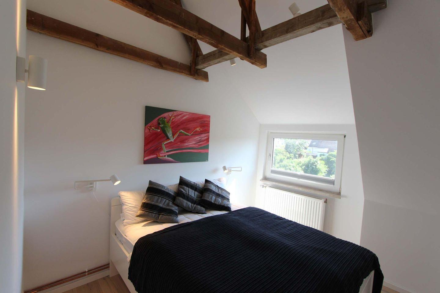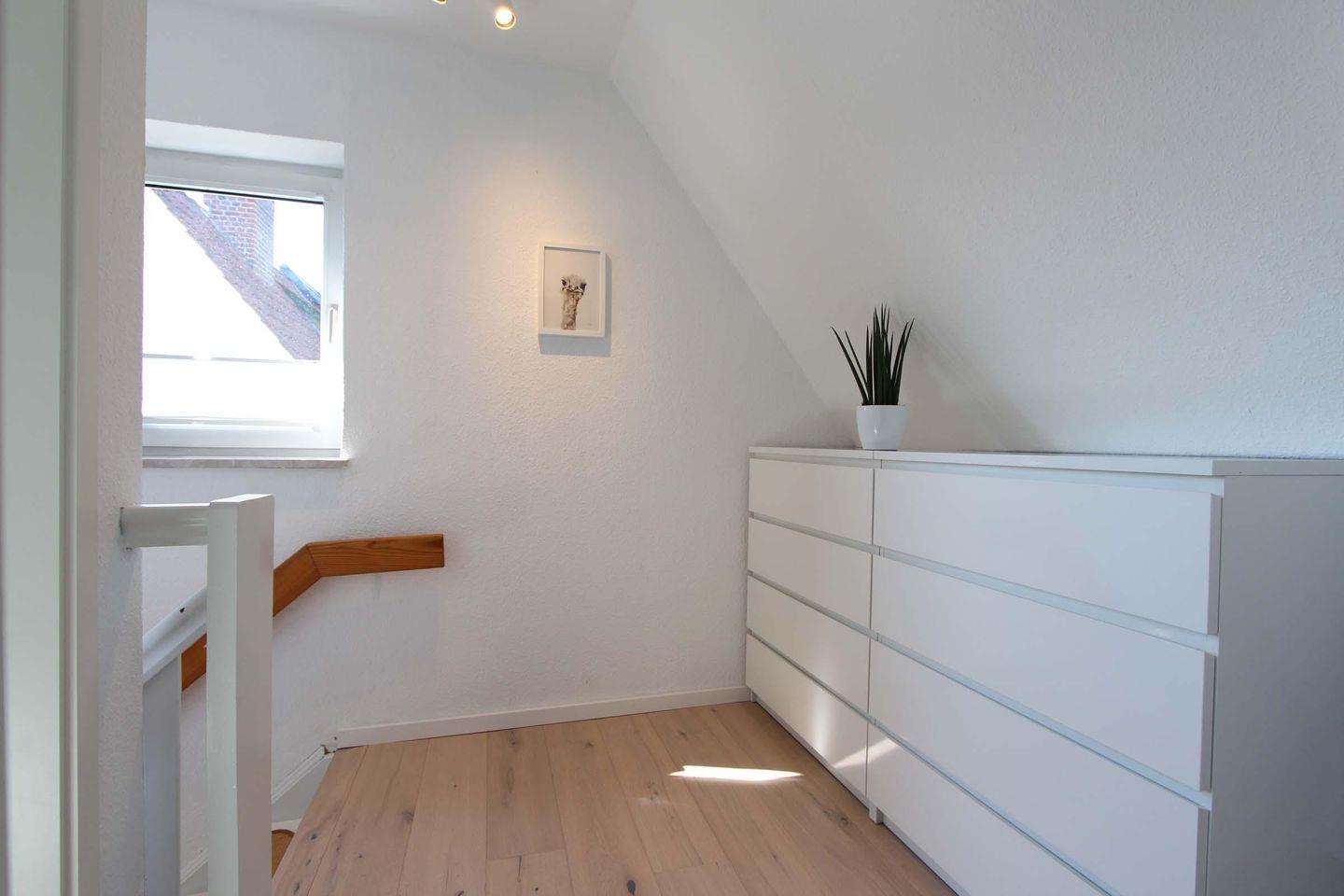 Im Obergeschoss finden Sie zwei separate Schlafzimmer mit Laminatboden, die insgesamt bis zu vier Personen eine angenehme Schlafmöglichkeit bieten. Das Schlafzimmer mit Doppelbett (1,60 x 2,00m) und TV erreicht man durch das Kinderzimmer Bett (0,90 x 2,00m) im kleineren Schlafzimmer kann durch eine Ausziehmatratze mit Lattenrost (0,90 x 2,00m) erweitert und von einem weiteren Kind genutzt werden. Ein modernes Badezimmer mit Dusche (mit Wanne), Waschbecken, WC, Spiegel und Fenster sowie ein zusätzliches Gäste-WC gewährleisten Komfort und Privatsphäre. Alle Fenster sind mit Sichtschutz ausgestattet. Für Ihren Schutz sorgt ein Rauchmelder.