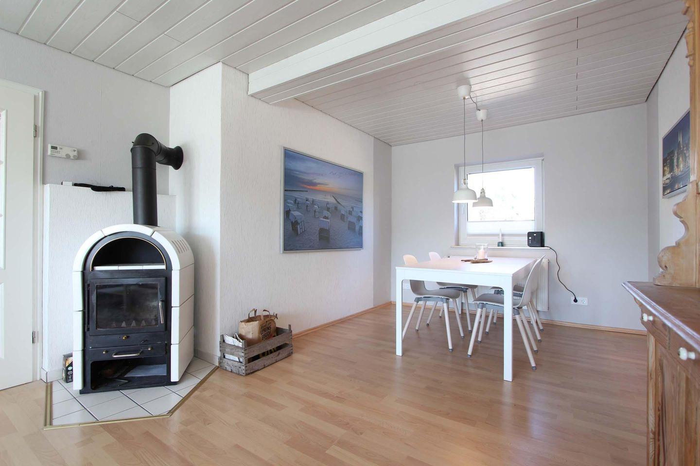 Im Erdgeschoss empfängt Sie ein einladender Wohnbereich mit gemütlichem Sofa, einem modernen TV (44-55 Zoll) und einer HiFi-Anlage. Ein Ofen sorgt an kühleren Tagen für wohlige Wärme und verlieht dem Raum eine behagliche Atmosphäre. WLAN steht Ihnen kostenfrei zur Verfügung, sodass auch digitale Erreichbarkeit sicher gewährleistet ist.