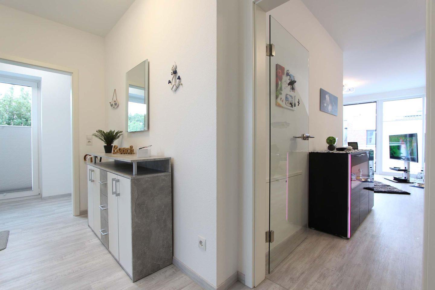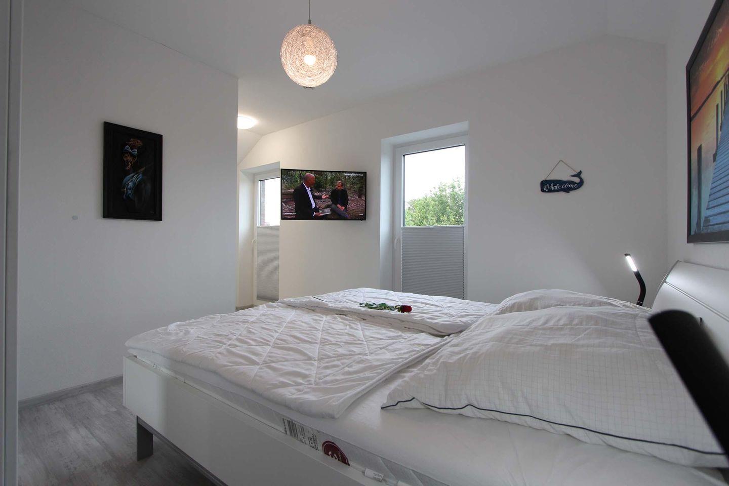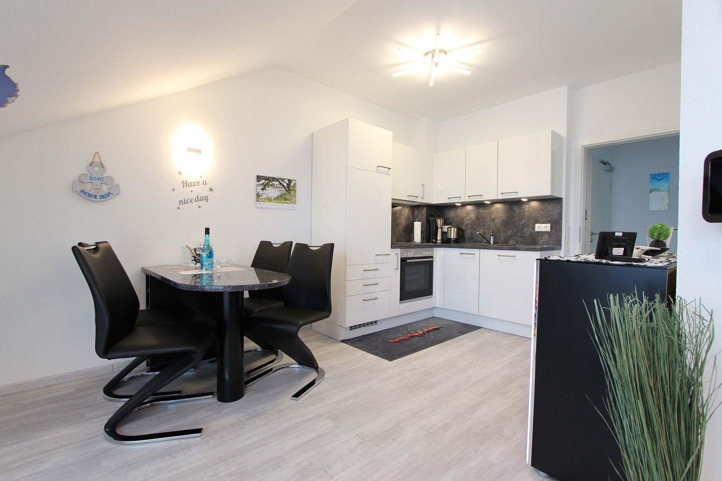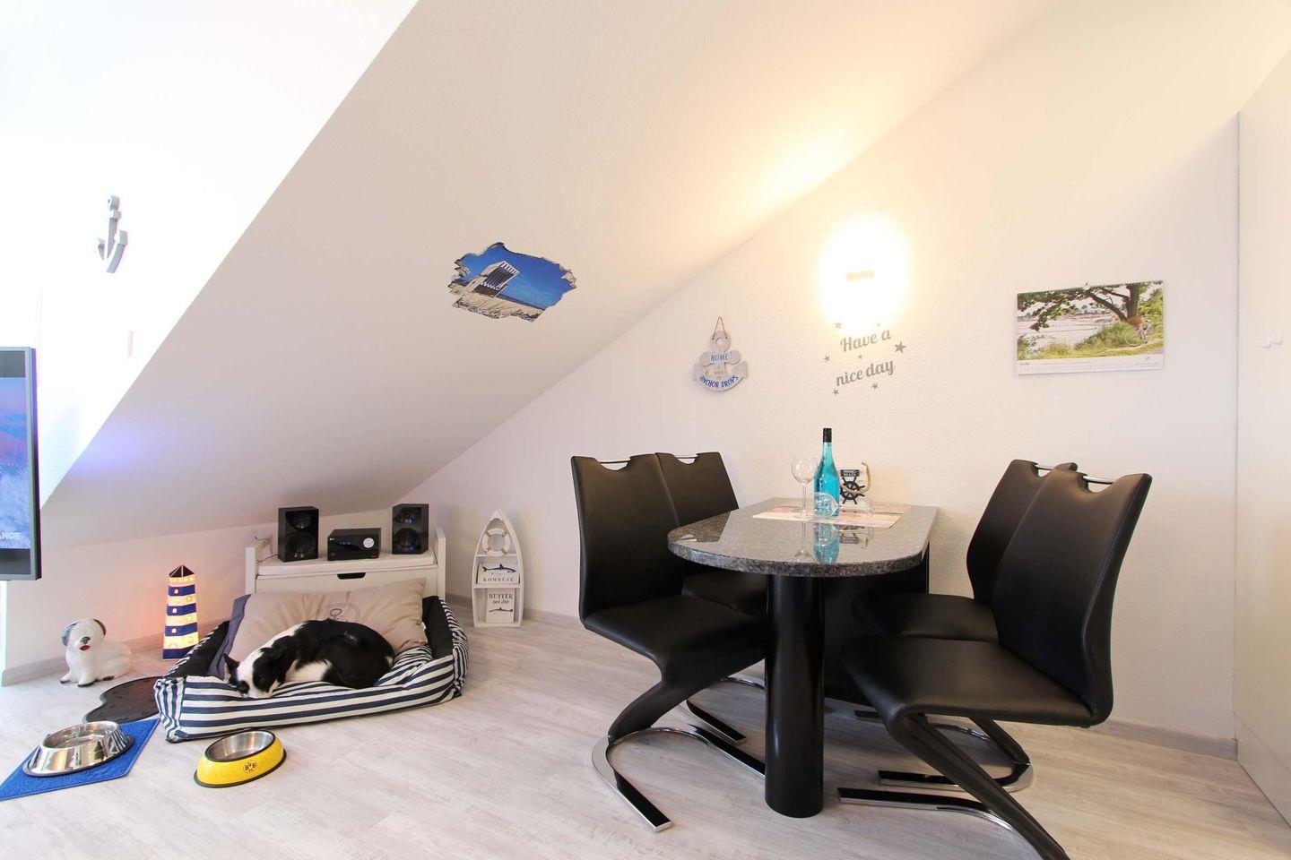 Die Wohnung Nordlicht Im Kirschgarten 5 vermieten wir für 2 Erwachsene, 1 Hund und auf Anfrage 1 Kind. Im Wohnzimmer erwartet Sie eine Ledercouch mit Rundecke, die zum Kuscheln einlädt. Mit dem 55-Zoll UHD-TV mit 3-fach Ambilight und Internetzugang können Sie Ihren Netflix oder Amazon-Prime Anschluß aktivieren. Ein UHD-Blu-Ray Player sowie eine Bluetooth-Mini-Stereoanlage mit USB-Anschluß stehen Ihnen ebenfalls zur Verfügung. Die Essecke besteht aus einem Granittisch mit 4 Stühlen. Die Küchenzeile ist komplett ausgestattet mit Ceranfeld, Backofen und Geschirrspüler. Das Schlafzimmer verfügt über ein 180 x 200 cm Doppelbett und verstellbarem Lattenrost, einem zusätzlichen Beistellbett 80 x 190 cm für Kinder, einem großzügigem Kleiderschrank und einem UHD-Fernseher, ebenfalls mit Internet. Zusätzlich zum Wohnzimmer können Sie im Schlafzimmer Ihren Sky-Account aktivieren. An beiden bodentiefen Fenstern befinden sich Verdunklungsplissees. Das großzügige Badezimmer hat eine 100 x 140 cm ebenerdige Walk-In-Dusche und eine Waschmaschine, ein Spiegelschrank und ein Fön runden die Einrichtung ab. Im Flur ist ein fest mit der Wand verbundener Minitresor im Garderobenschrank integriert. Die Wohnung ist barrierefrei über einen Aufzug zu erreichen. Für den Hund gibt es ebenfalls eine gemütliche Kuschelecke bestehend aus Körbchen mit Hundekissen und Näpfen. Auf der 10 qm großen Sonnenterrasse stehen Ihnen ein Tisch mit 2 Stühlen, 2 Klappstühlen und eine Liege zur Verfügung. Auch ein Bollerwagen ist für Sie verfügbar und in der Hauptsaison (von Mai bis September (je nach Anordnung der Kurverwaltung)) gehört zu dieser Wohnung auch ein Strandkorb am Hundestrand. Die per Funk gesteuerte elektrische Markise schützt Sie vor einem Sonnenbrand. In der kälteren Jahreszeit sorgt die Fußbodenheizung in allen Räumen für eine behagliche Wärme. W-LAN steht Ihnen kostenlos zur Verfügung. Ihr privater PKW-Stellplatz befindet sich direkt vor dem Haus und für Gäste mit eigenem Fahrrad gibt es noch einen separaten Abstellraum mit Stromanschluss für E-Bikes. Einkaufsmöglichkeiten, Restaurants und der Strand sind fußläufig in kurzer Zeit zu erreichen. Ein zweiter Hund ist auf Anfrage möglich.