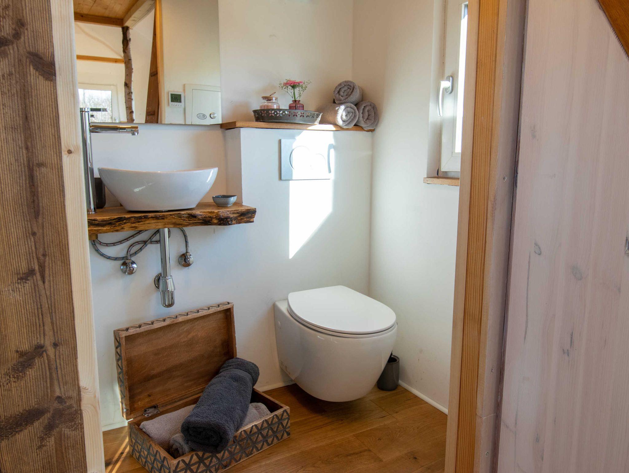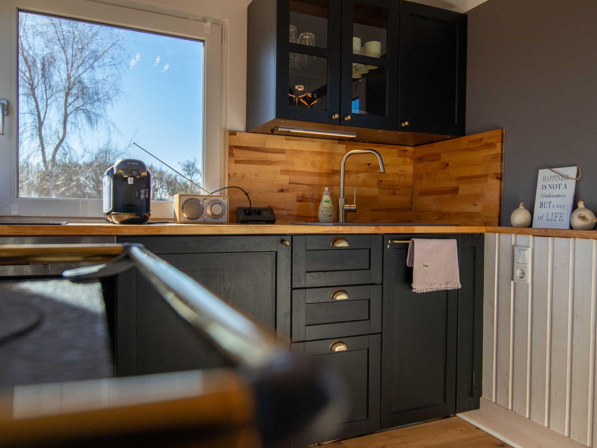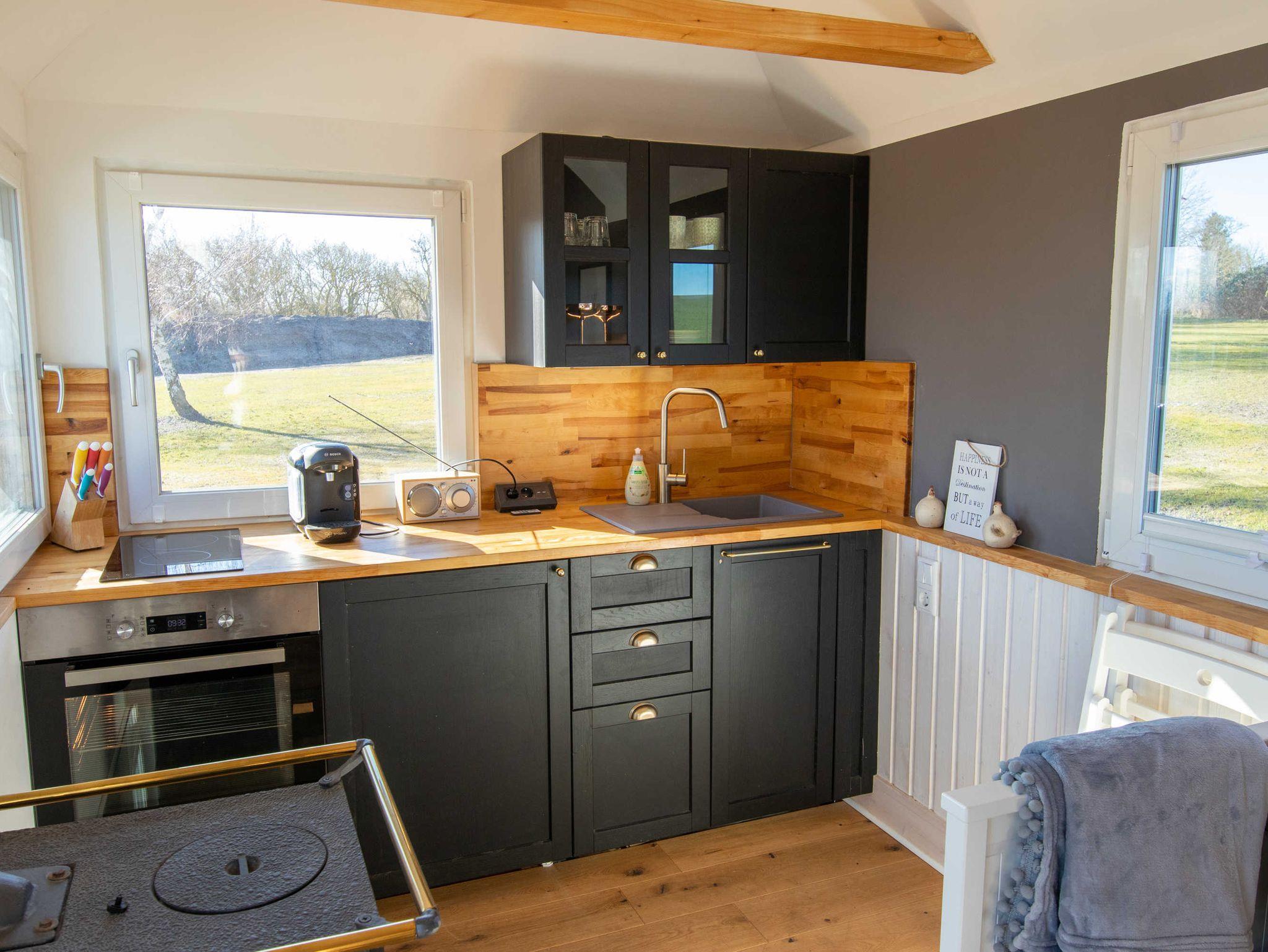 Charmantes Tiny House Hygge in Kenz-Küstrow mit Holzofen, Terrasse und Seeblick für erholsame Auszeiten.