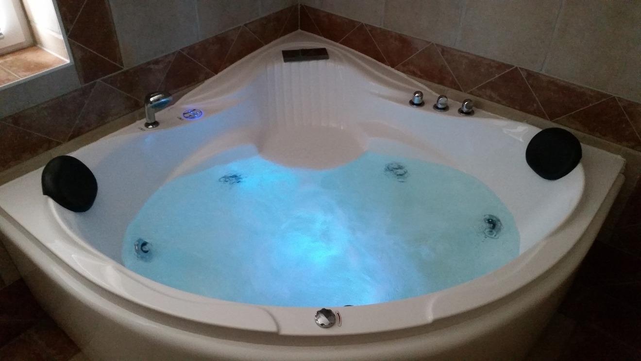 Whirlpool-Bad 6 m², großer Familien-Whirlpool, gefliest, Waschbecken, WC