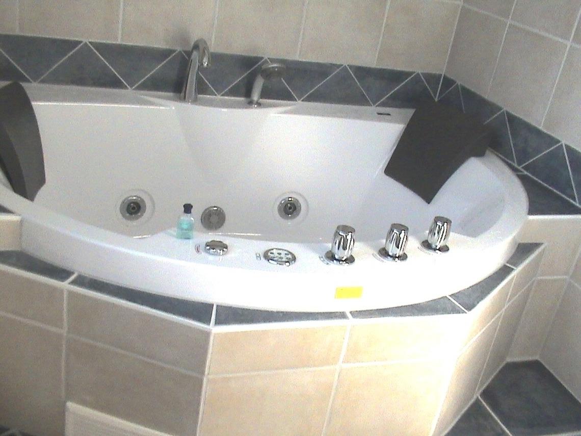 Familien-Bad 6 m² mit großer Badewanne, gefliest, Waschbecken, WC