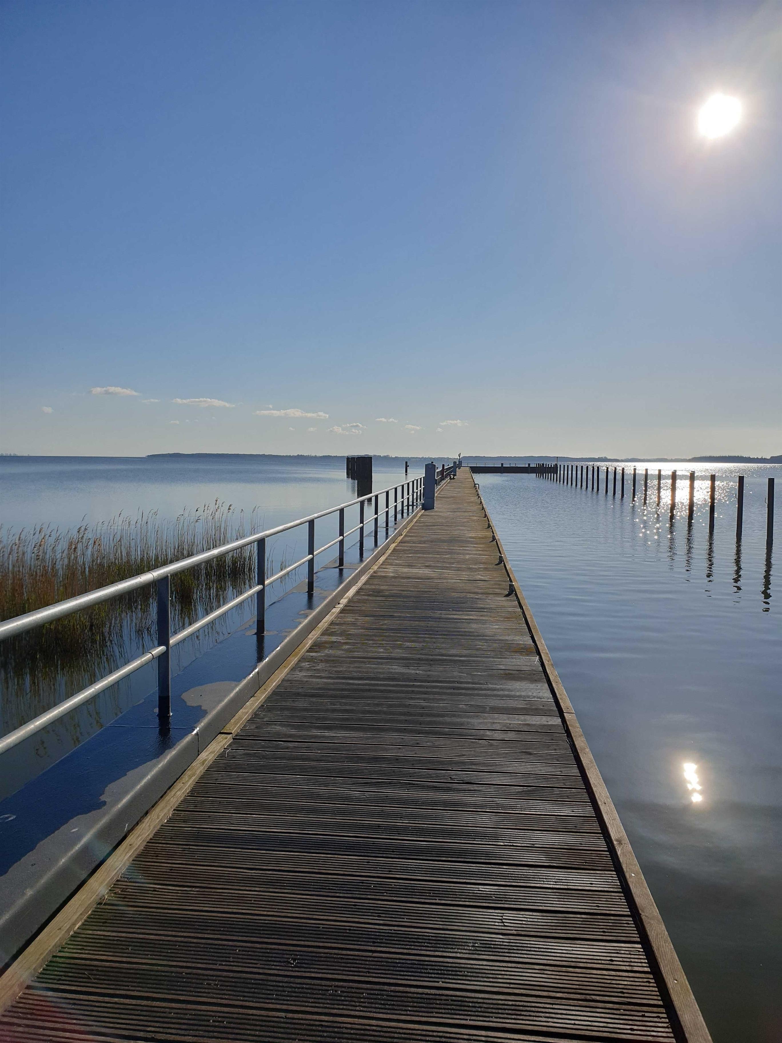 Von der 200m langen Seebrücke hat man einen beeindruckenden Panoramablick über die Ostseebucht Grabow.