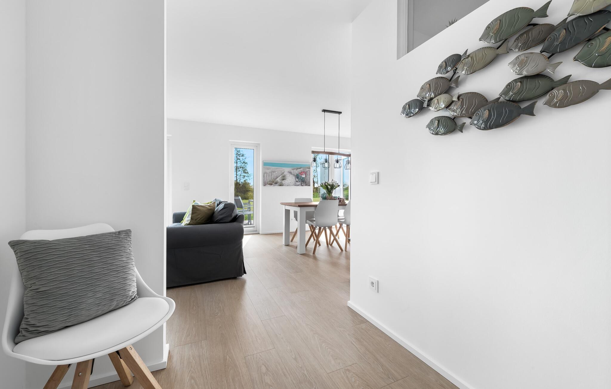 KIEBITZ- ist eine großzügige und geräumige Design-Ferienlounge im Erdgeschoss mit direktem Blick auf die Naturschutz-Salzwiesen und Felder.