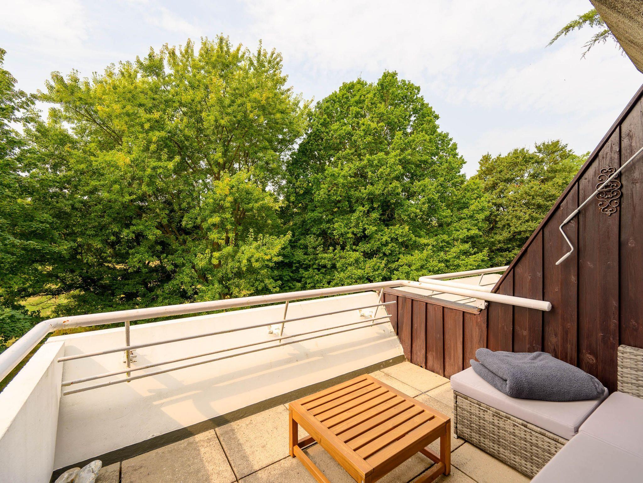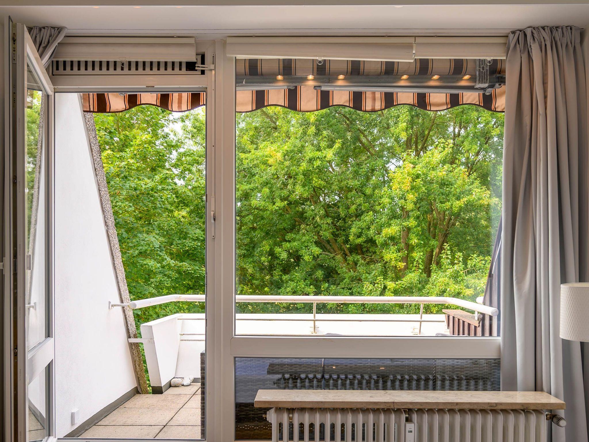 Der 6 qm² große Balkon, vom Wohnbereich aus zu betreten, und verfügt über eine Loungeecke mit einer Markise. Genießen Sie den beruhigen Blick ins Grün und durch die Süd-West-Ausrichtung bis in die Abendstunden die Sonne auf dem Balkon!