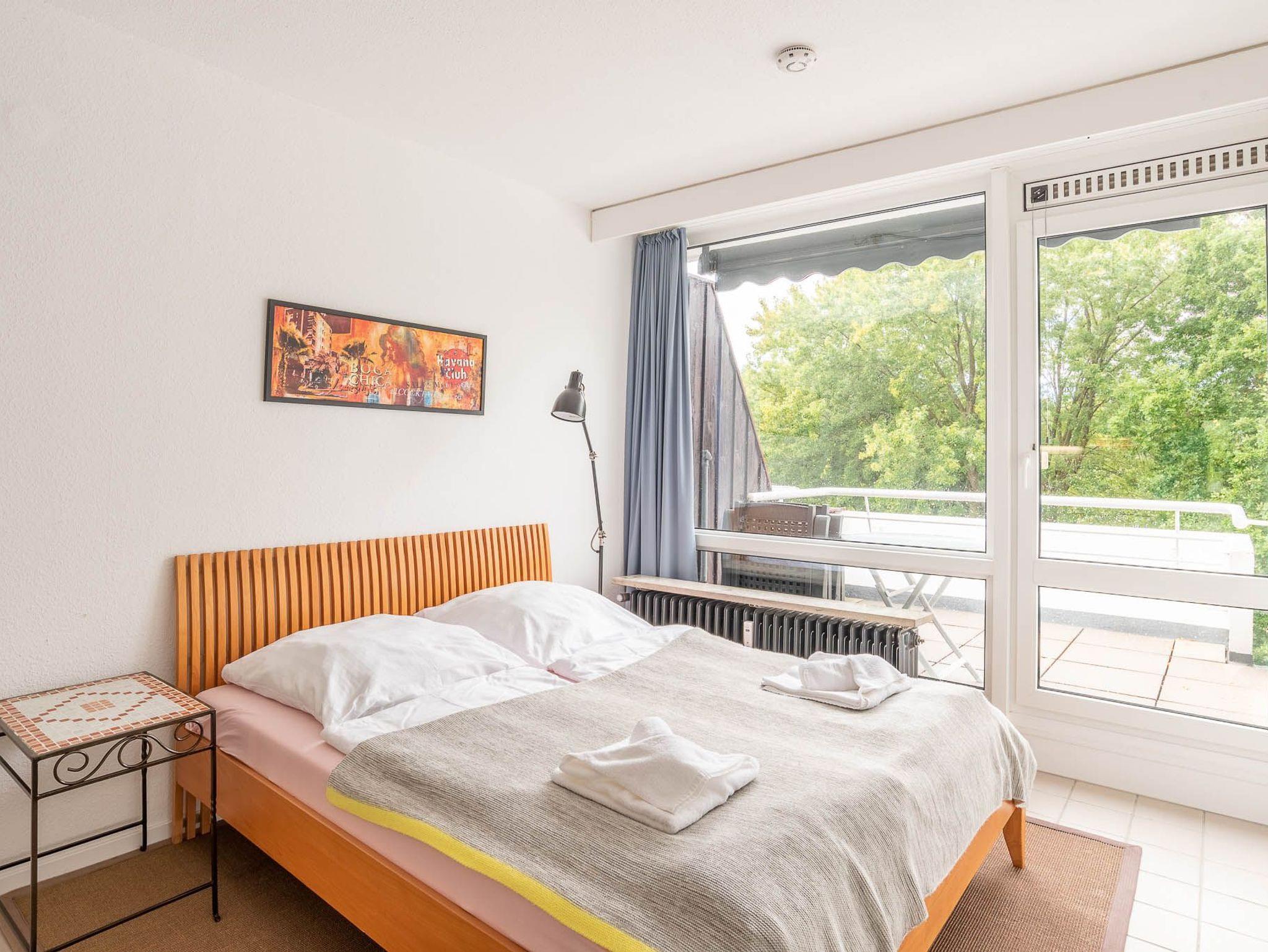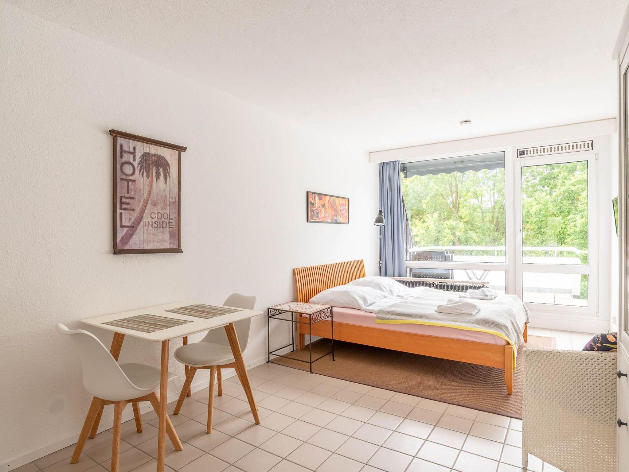 Maritime 1-Zimmer-Ferienwohnung mit Balkon und Blick ins Grüne in Kiel-Schilksee, nur wenige Schritte vom Strand und Hafen entfernt.