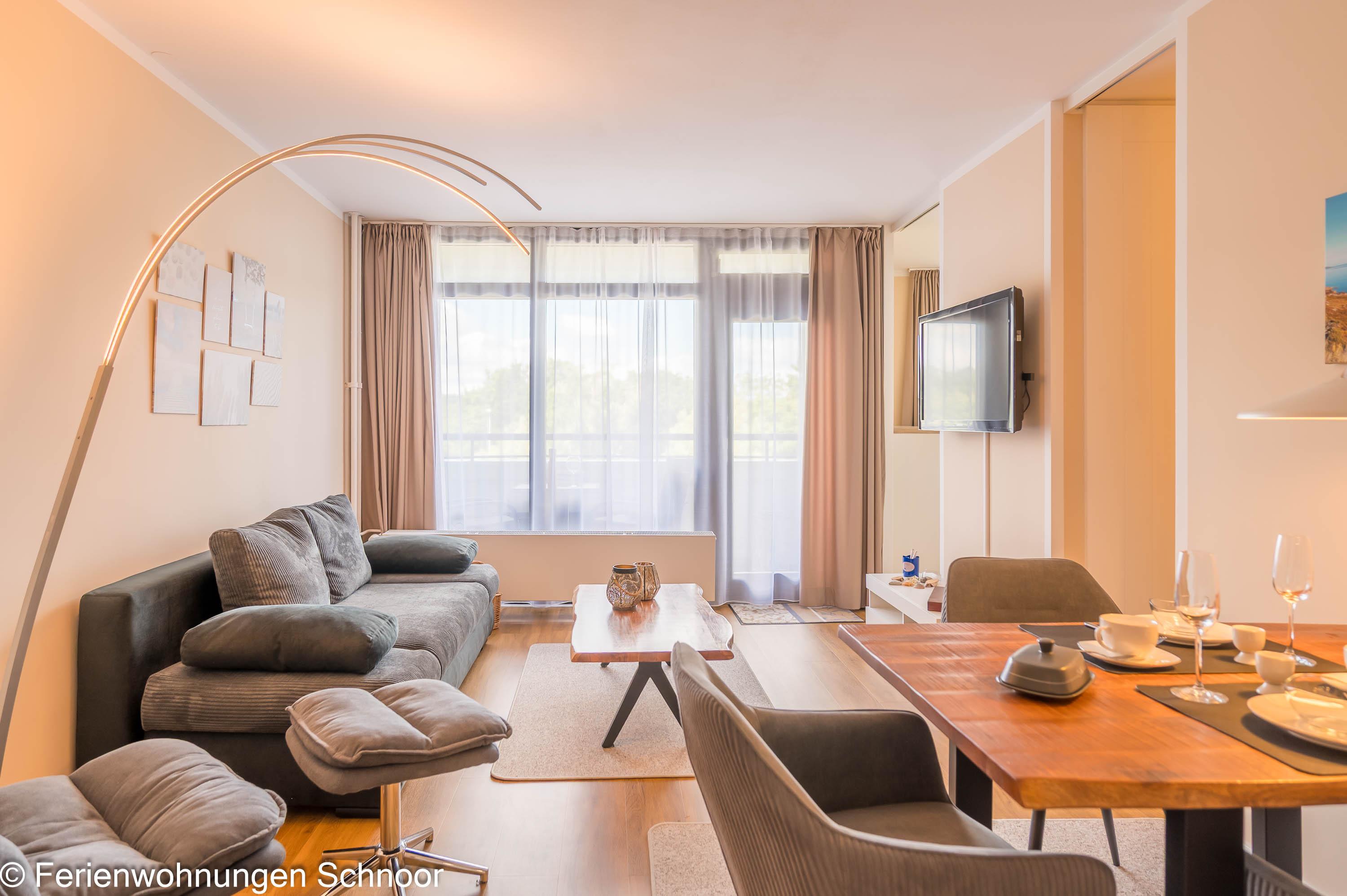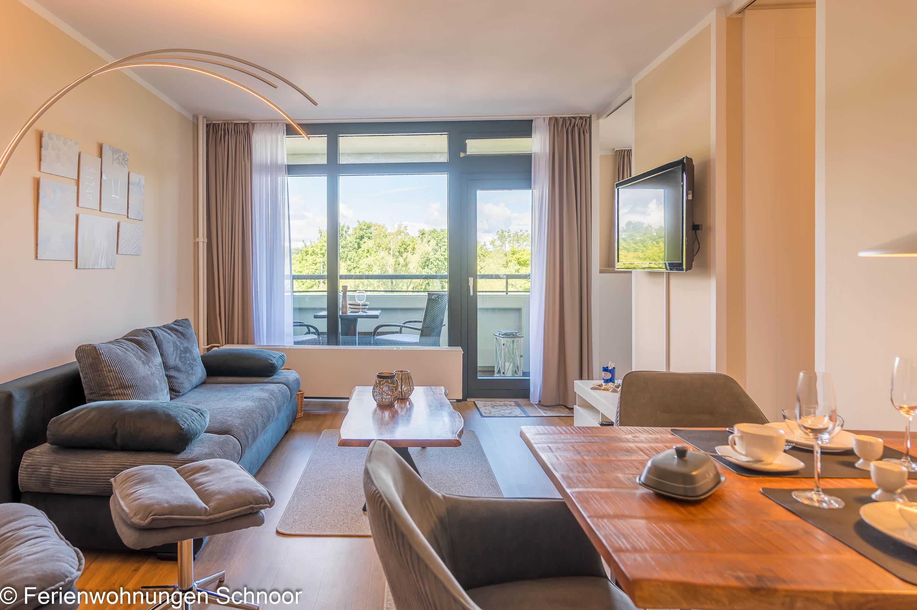 Moderne 47m² Ferienwohnung mit Balkon und Fahrstuhl in Kiel-Schilksee, ideal für 3 Gäste.