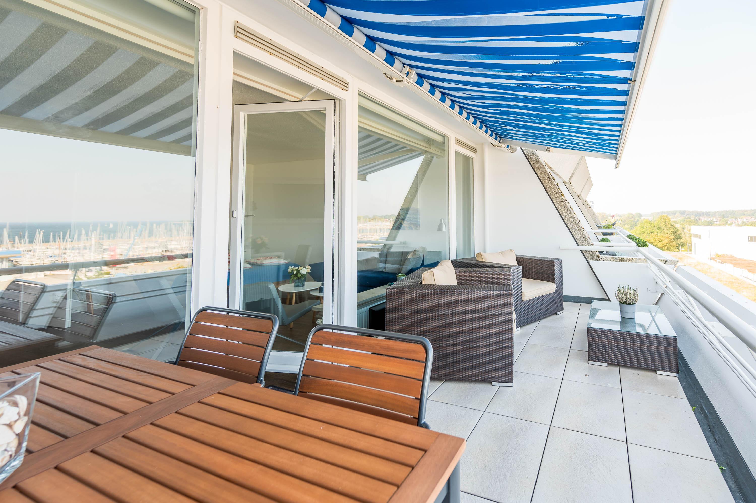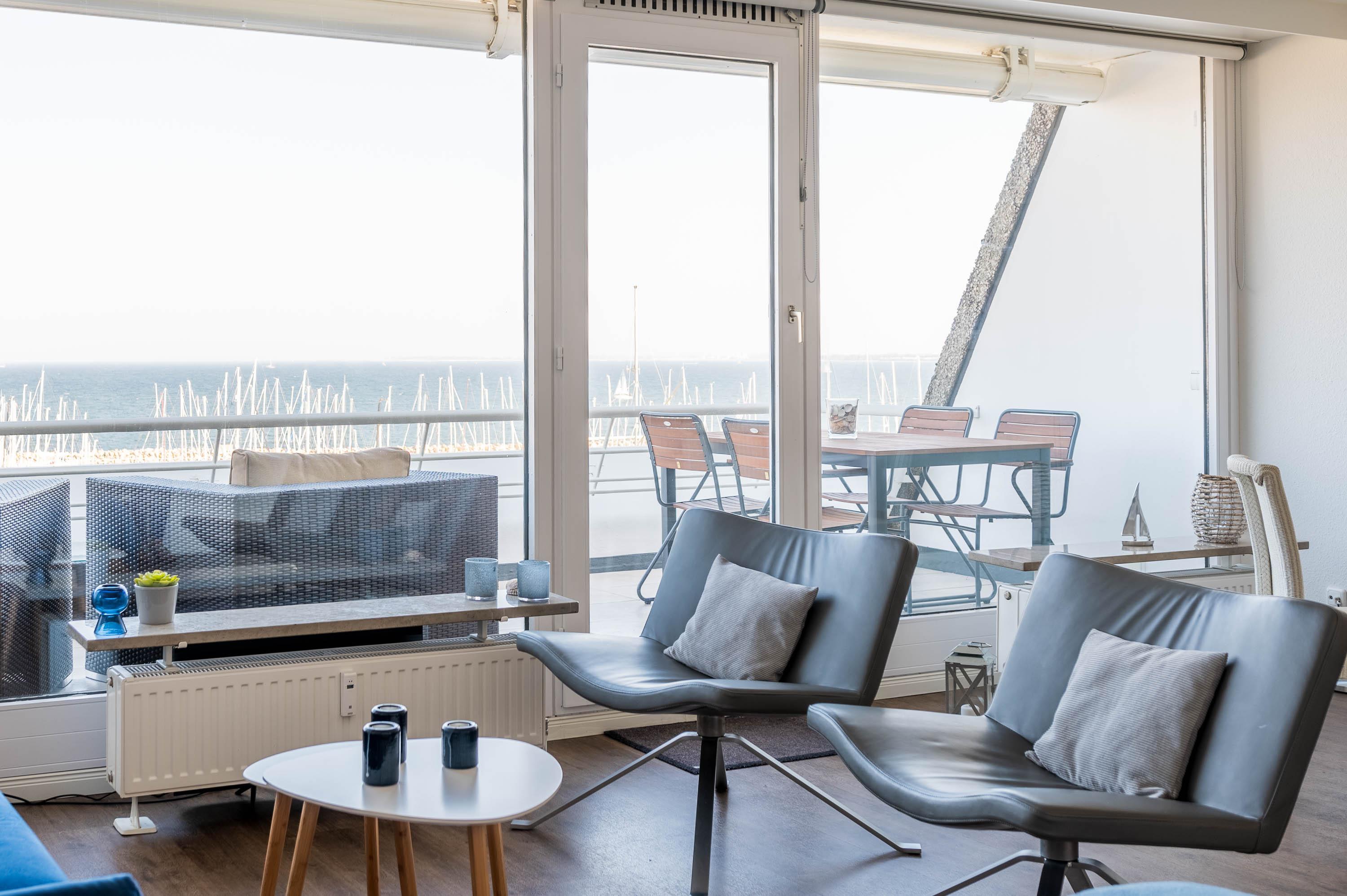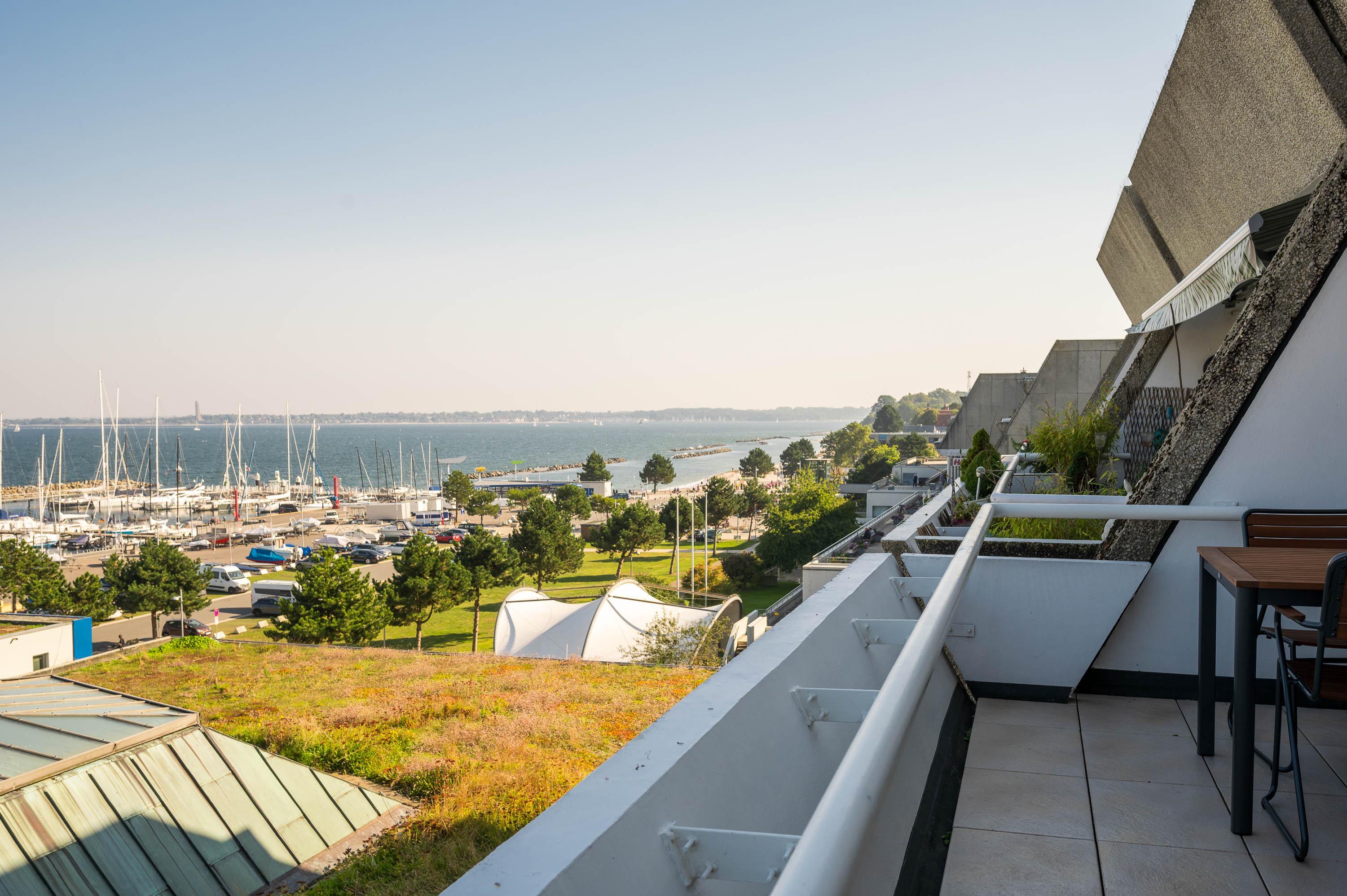 Moderne Ferienwohnung mit Meerblick und großem Balkon im Olympiahafen Kiel-Schilksee.