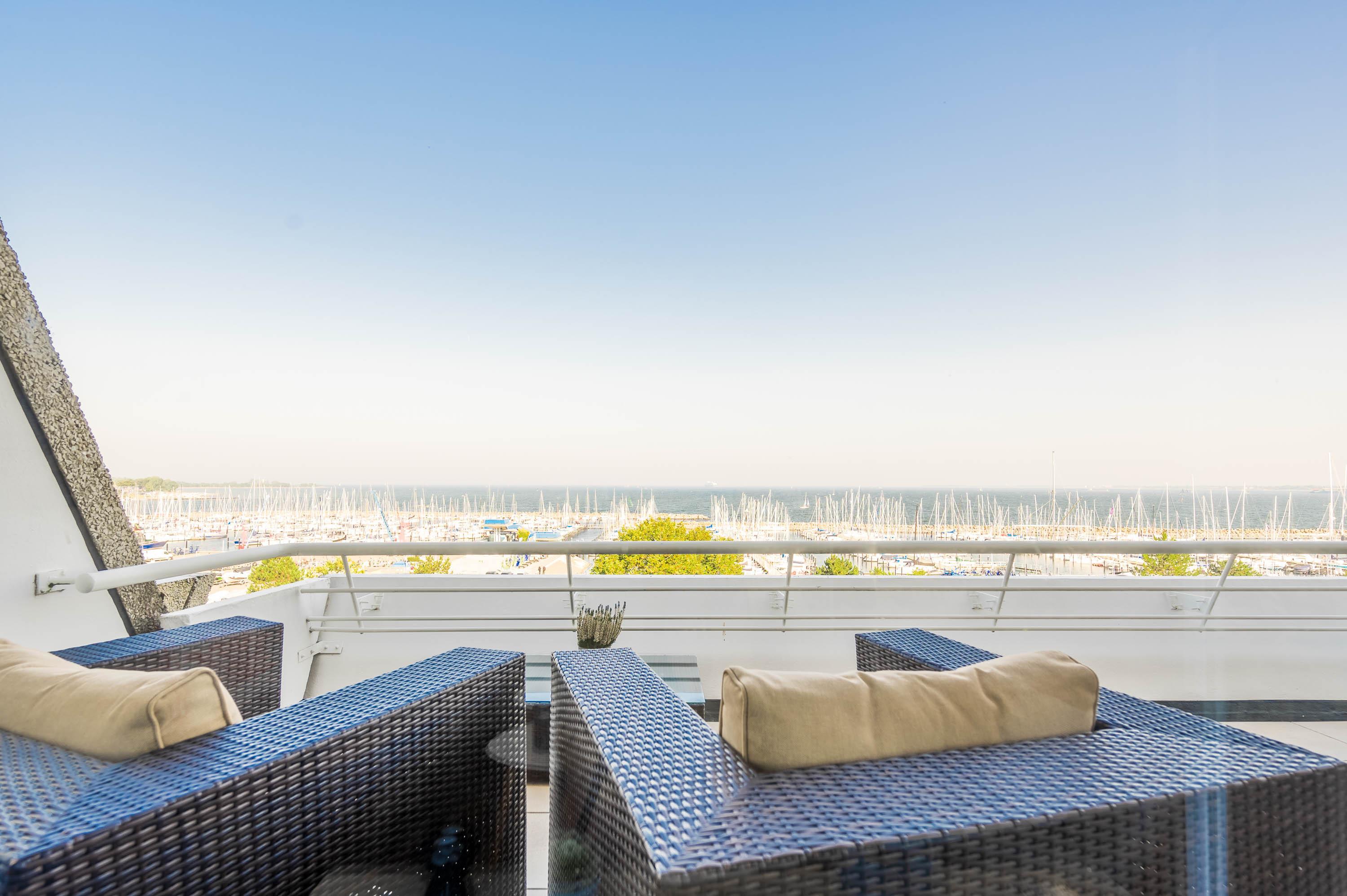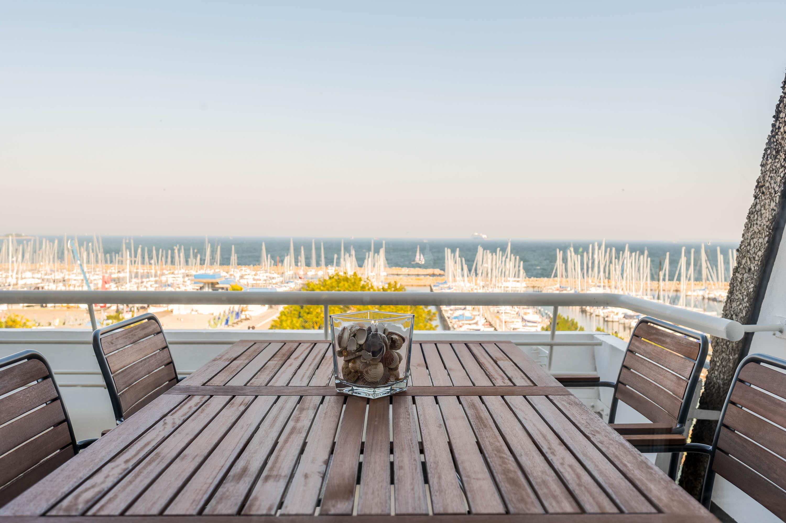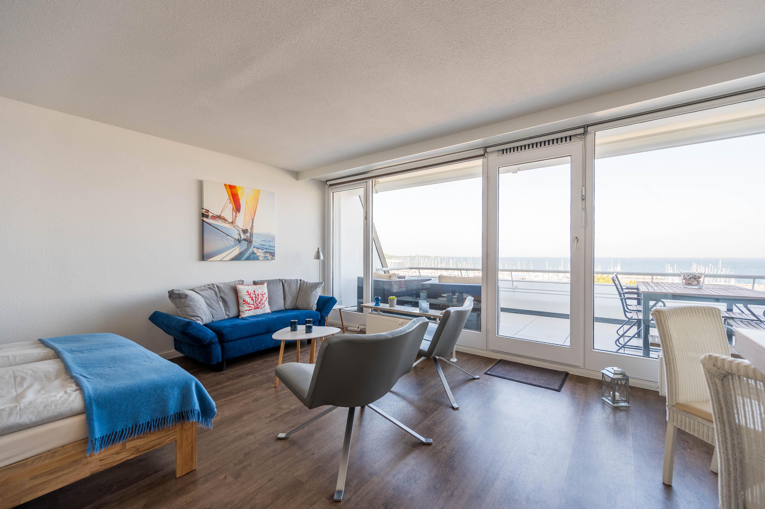 Moderne Ferienwohnung mit Meerblick und großem Balkon im Olympiahafen Kiel-Schilksee.