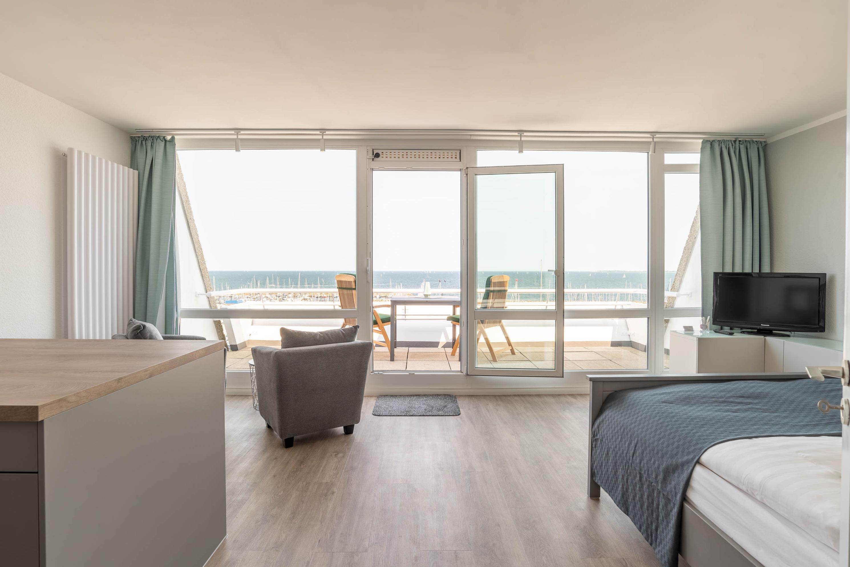 Die 46qm große 1-Zimmer Wohnung macht seinem Namen alle Ehre und besticht durch die bodentiefe Fensterfront mit einem atemberaubenden Ausblick auf die Ostsee. Bis zu 2 Personen finden hier Platz.
