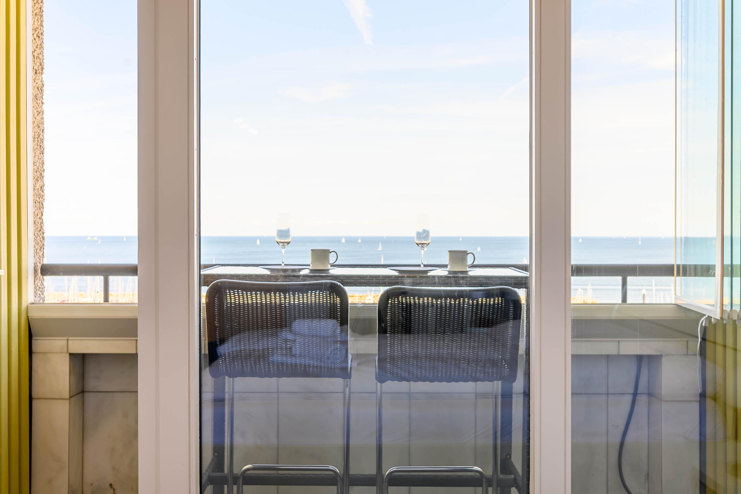 Neu renovierte Ferienwohnung mit Meerblick und Balkon in Kiel-Schilksee, ideal für zwei Personen im 9. Stock des Olympia Hotels.