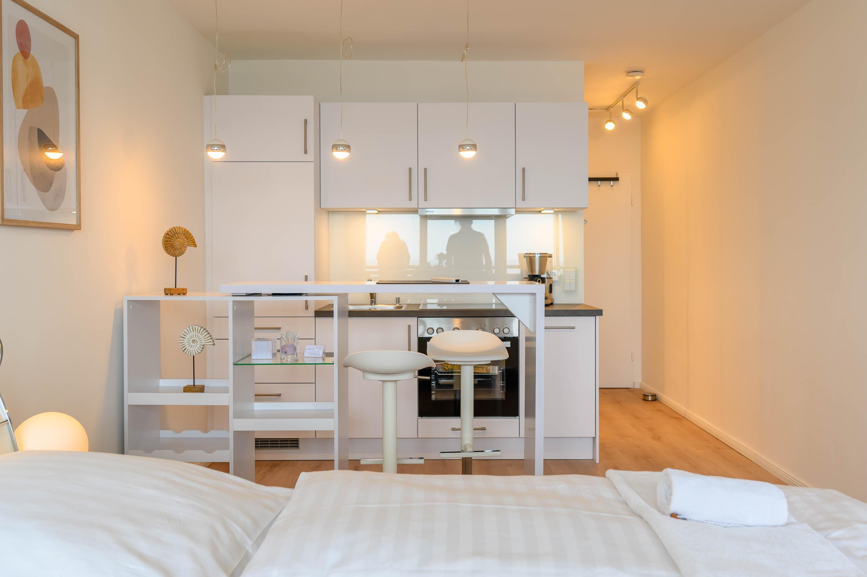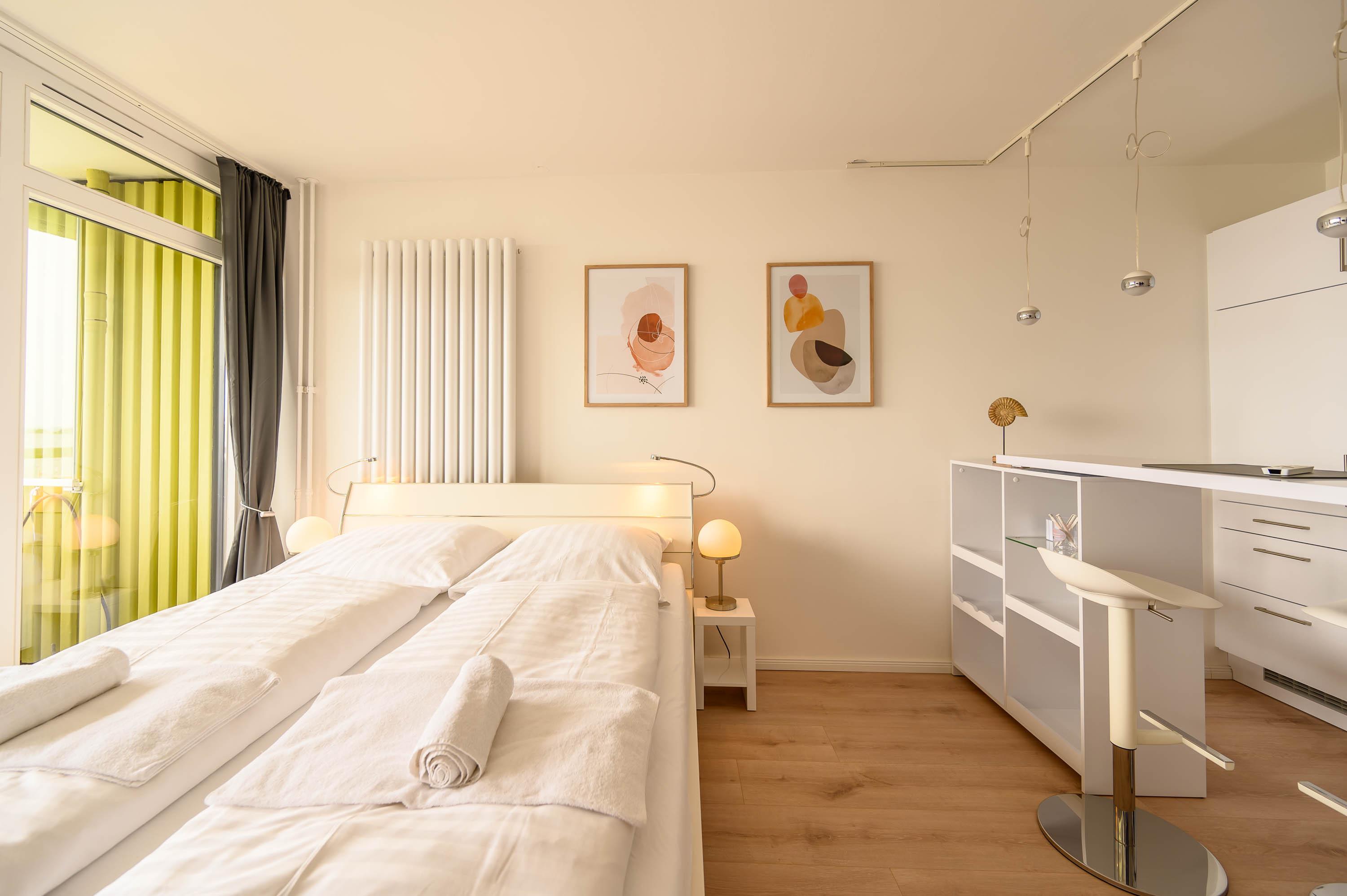 Die neu renovierte Ferienwohnung gewährt einen traumhaften Ausblick auf die Kieler Förde sowie den Schilkseer Hafen und lädt mit seinem dezenten, nordischen Charme zum Verweilen ein. Das 28 qm Appartement bietet Platz für zwei Personen und befindet sich im 9. Stock des Olympia Hotels, der bequem mit dem Fahrstuhl zu erreichen ist.