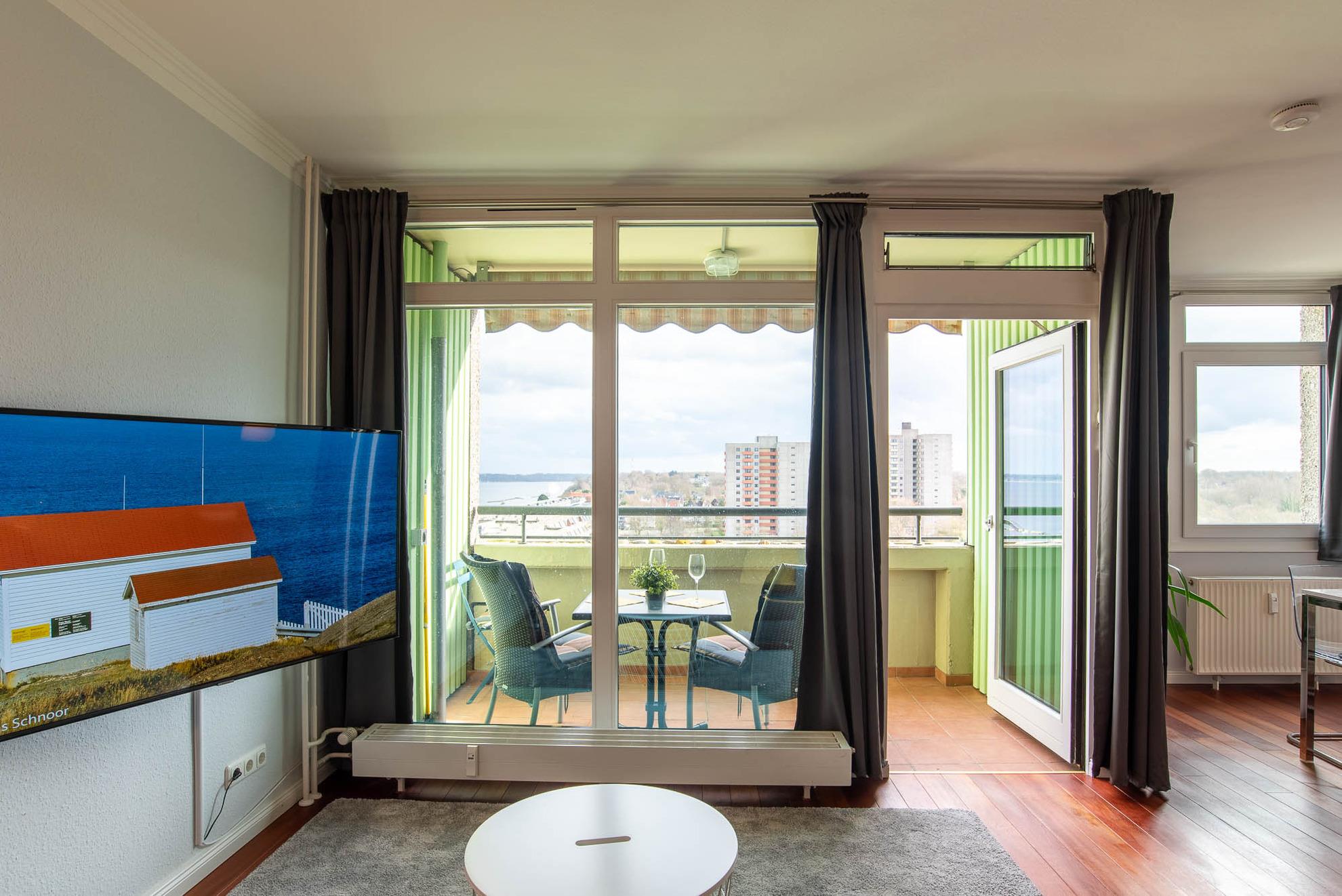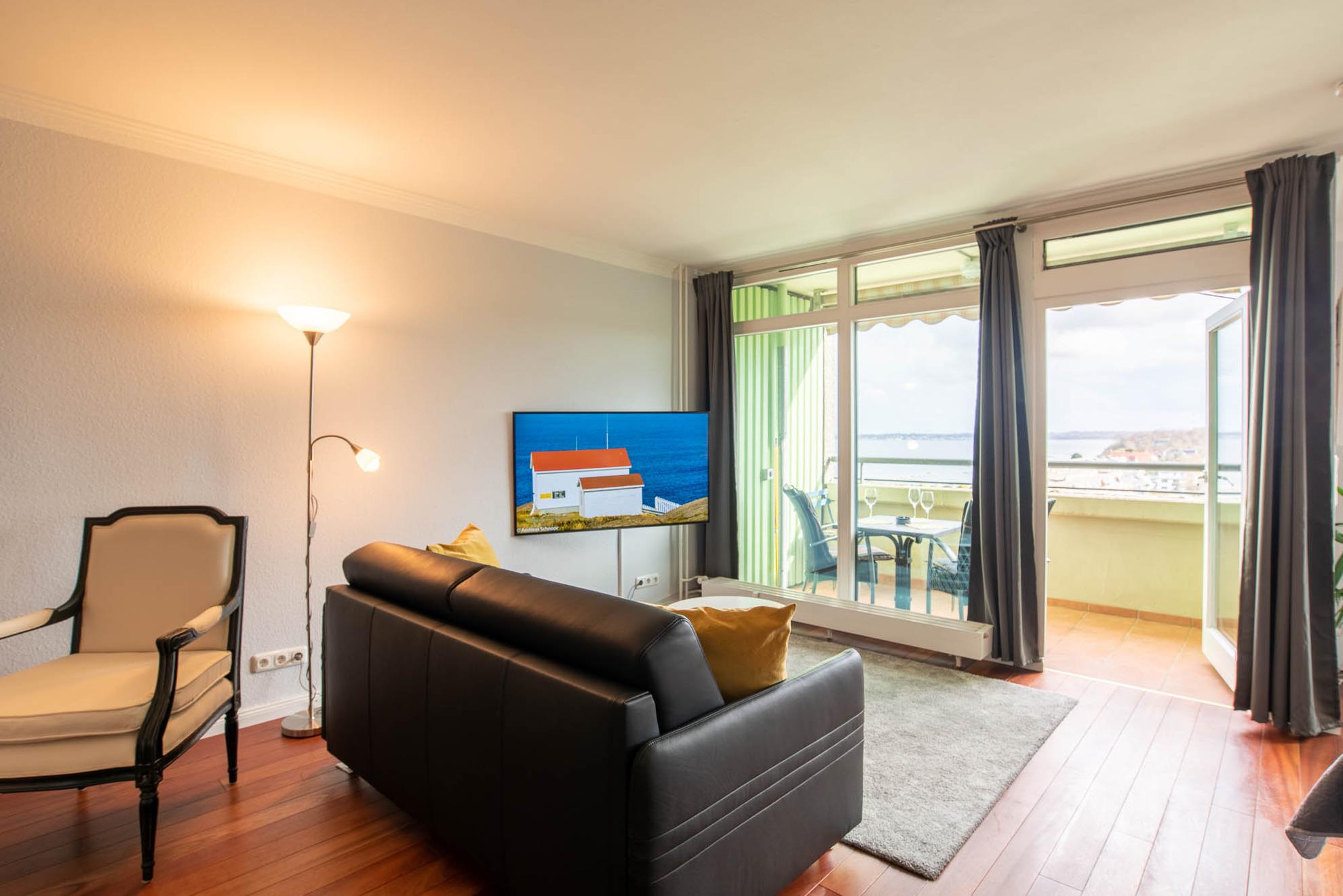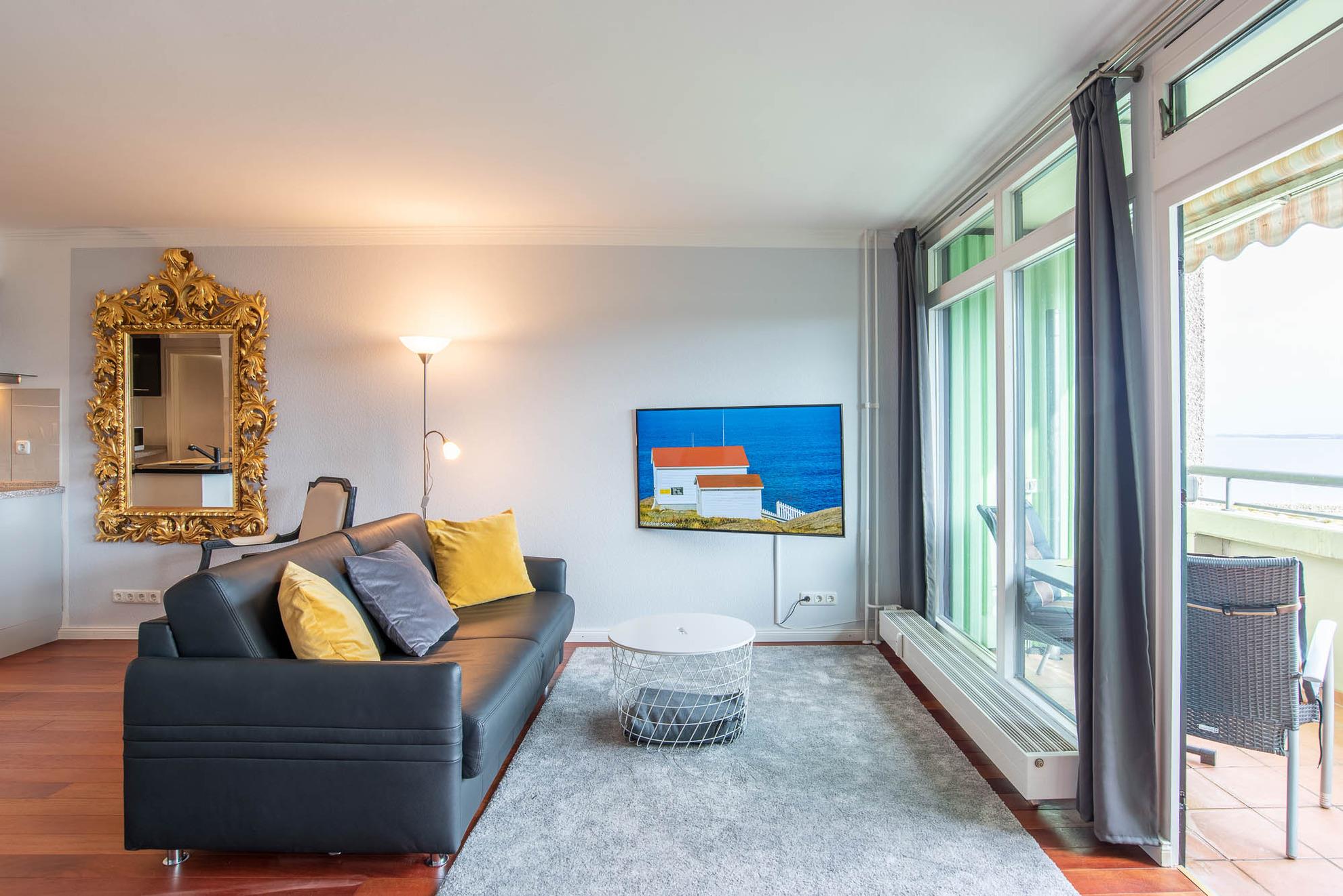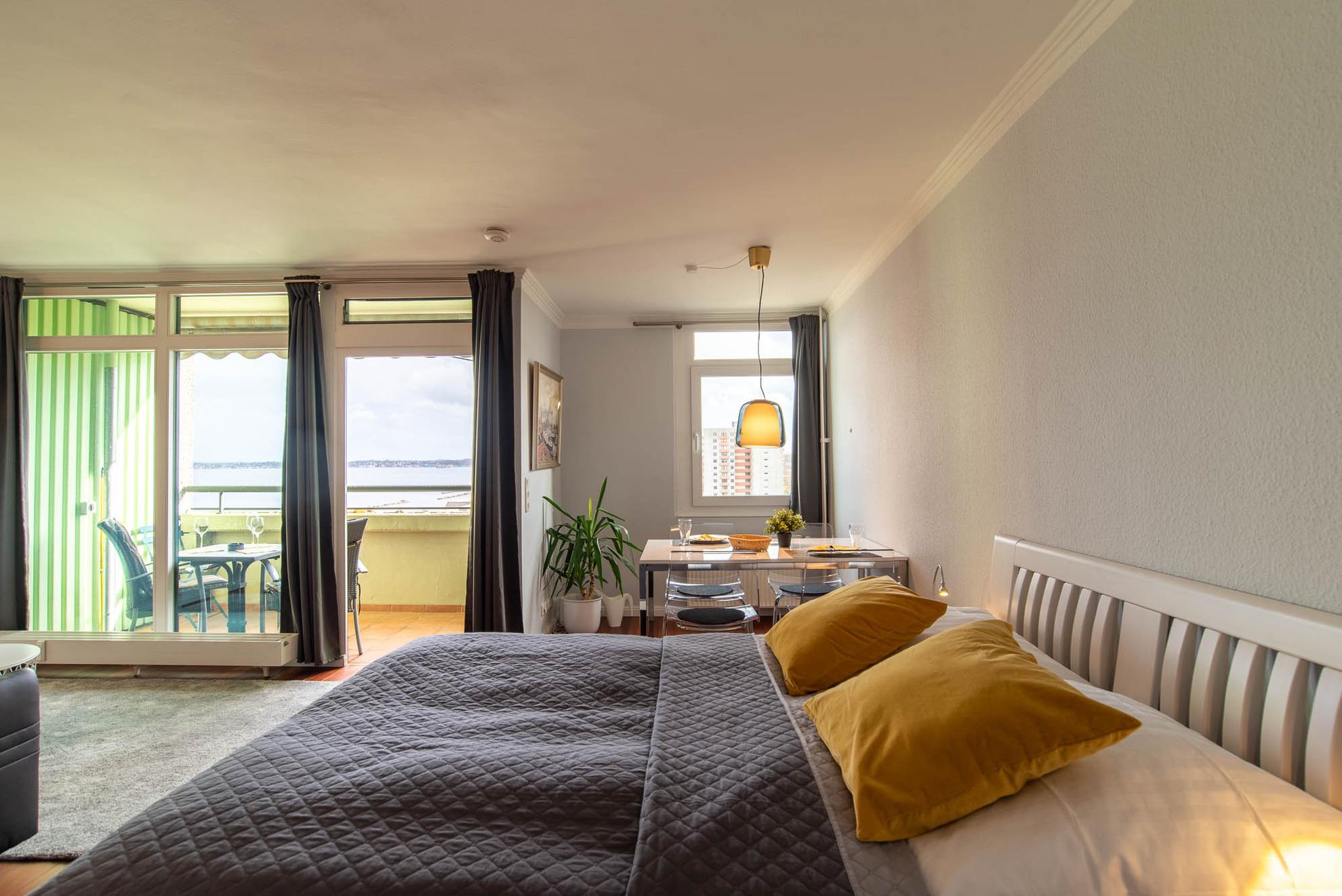 Modernes 1-Zimmer-Appartement mit Meerblick und Balkon im Olympia Hotel Kiel-Schilksee.