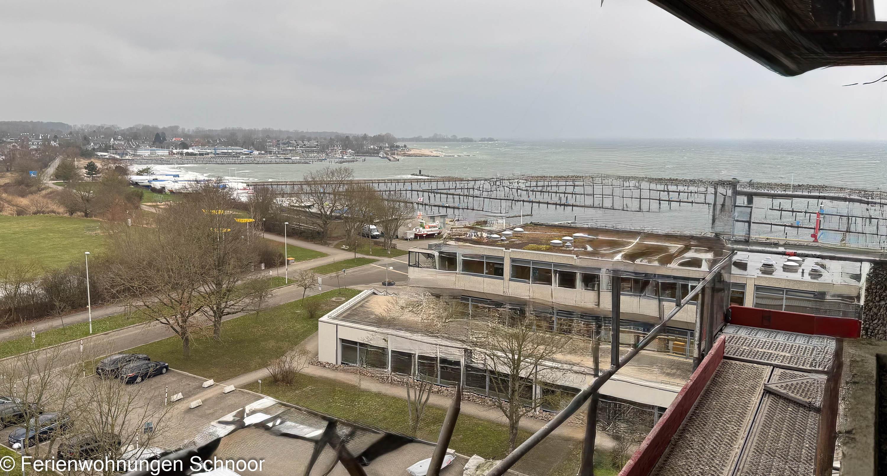 Gemütliche 2-Zimmer-Ferienwohnung mit seitlichem Meerblick im 7. Stock in Kiel-Schilksee.
