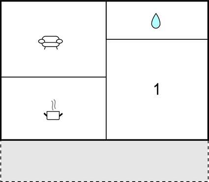 Wohnraum 23m2 - 2 Schlafmöglichkeiten. (Schlafsofa,Matratze,Sonstiges).