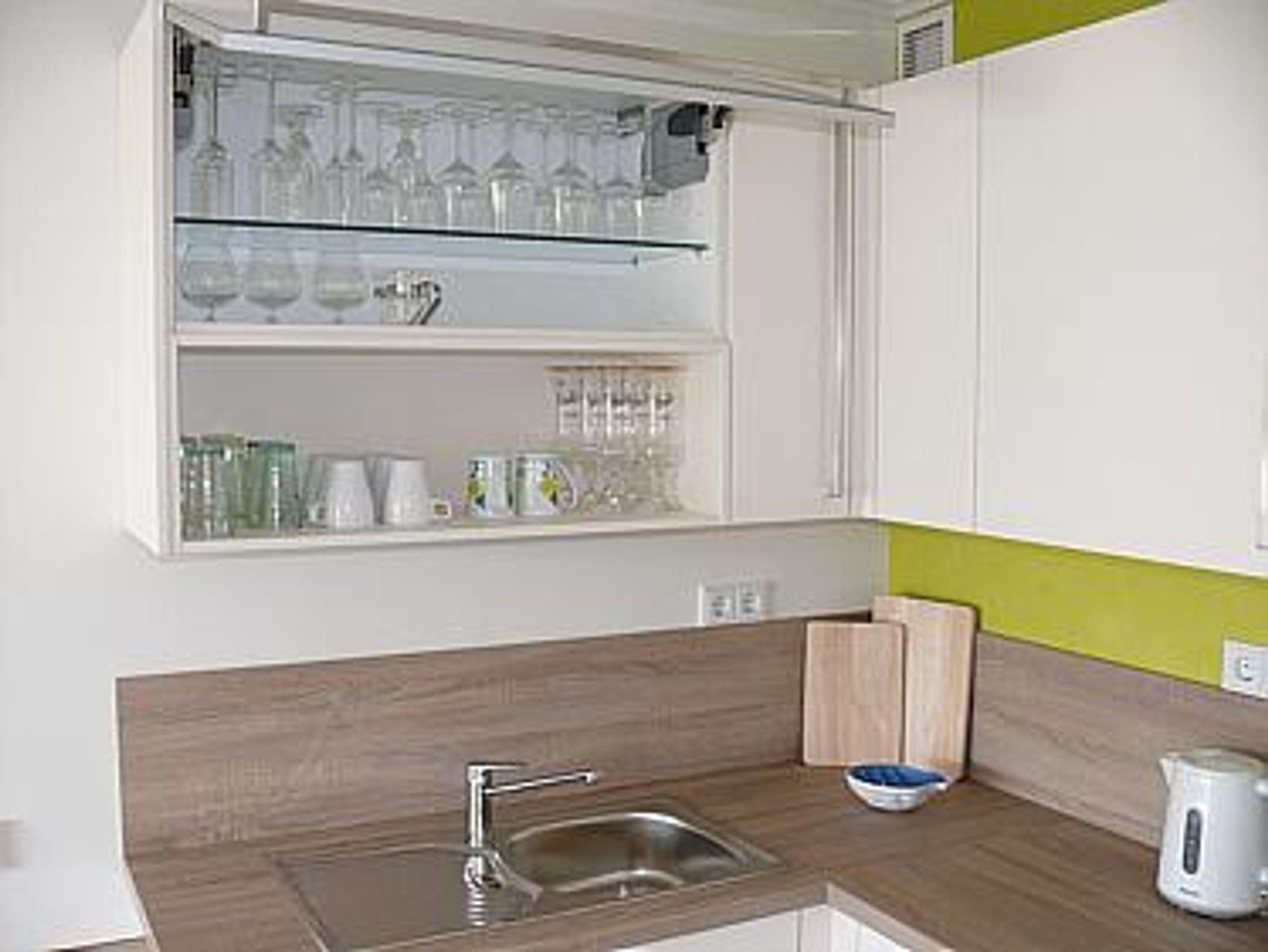 Die Ferienwohnung befindet sich im zweiten Stock einer Appartementanlage. Durch die Westlage können Sie den Sonnenuntergang auf dem Balkon genießen. Es sind Gartenmöbel sowie eine Markise vorhanden.