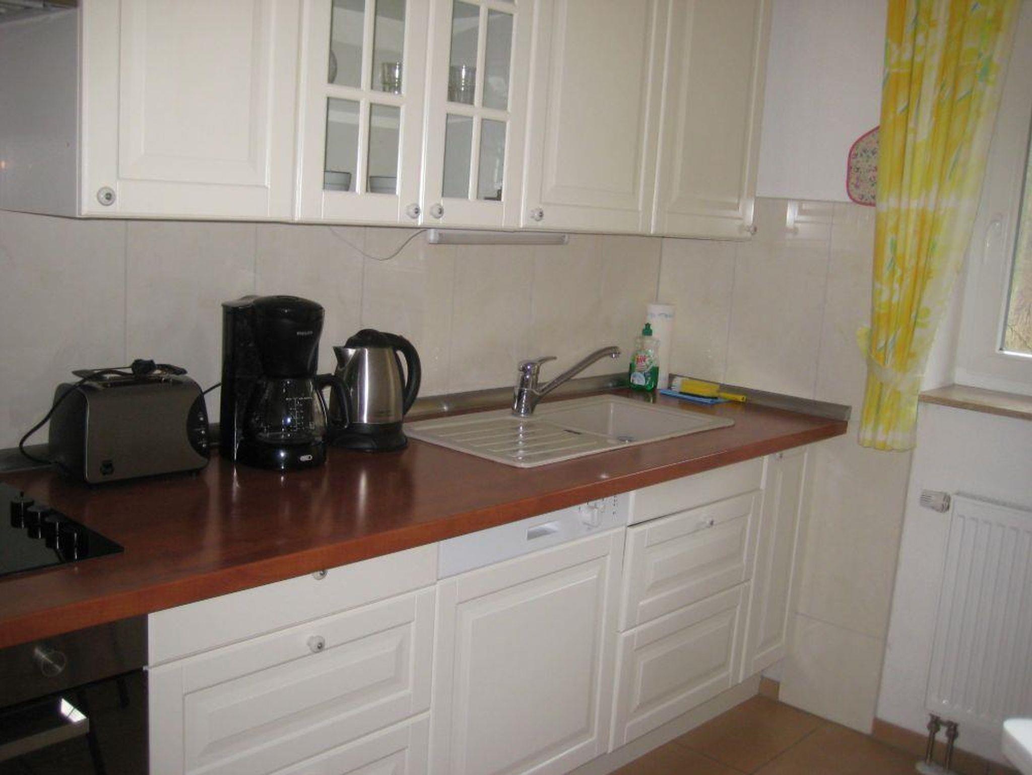 Küche: komplett eingerichtet u.a. mit Cerankochfeld, Backofen, Kühl-/Gefrierkombination, Kaffeemaschine, Wasserkocher,