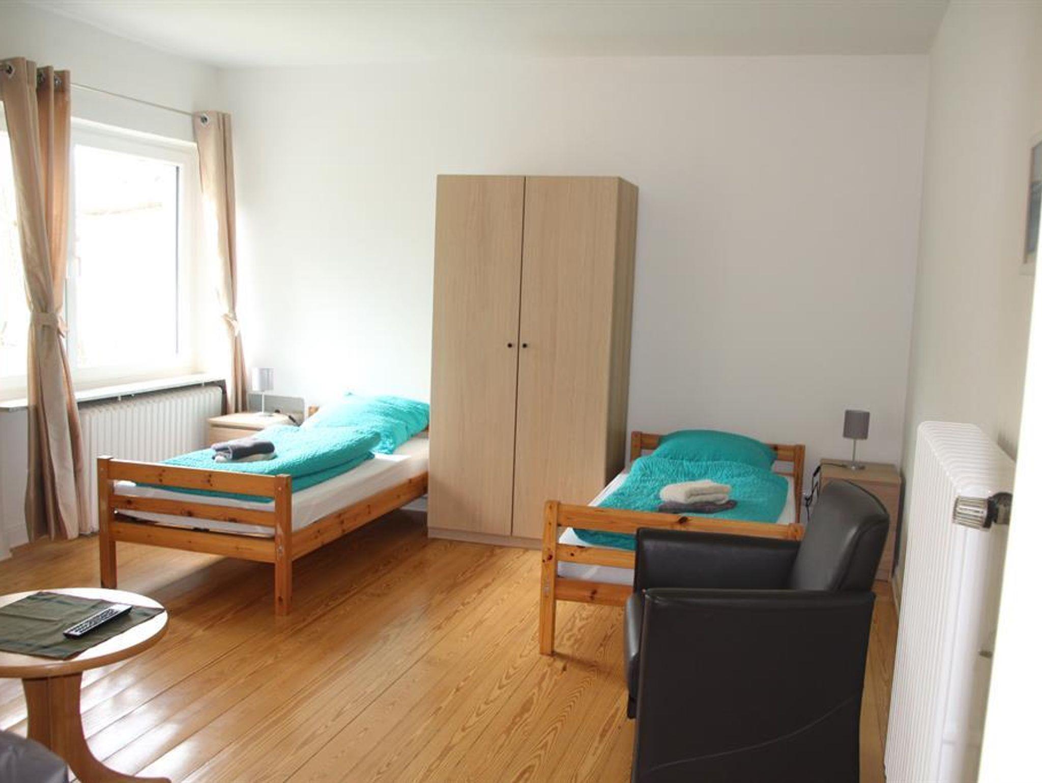 In unserer Stadtvilla bieten wir zwei Gästewohnungen an: eine im Erdgeschoss und eine im ersten Obergeschoss, beide mit Blick auf den Garten.