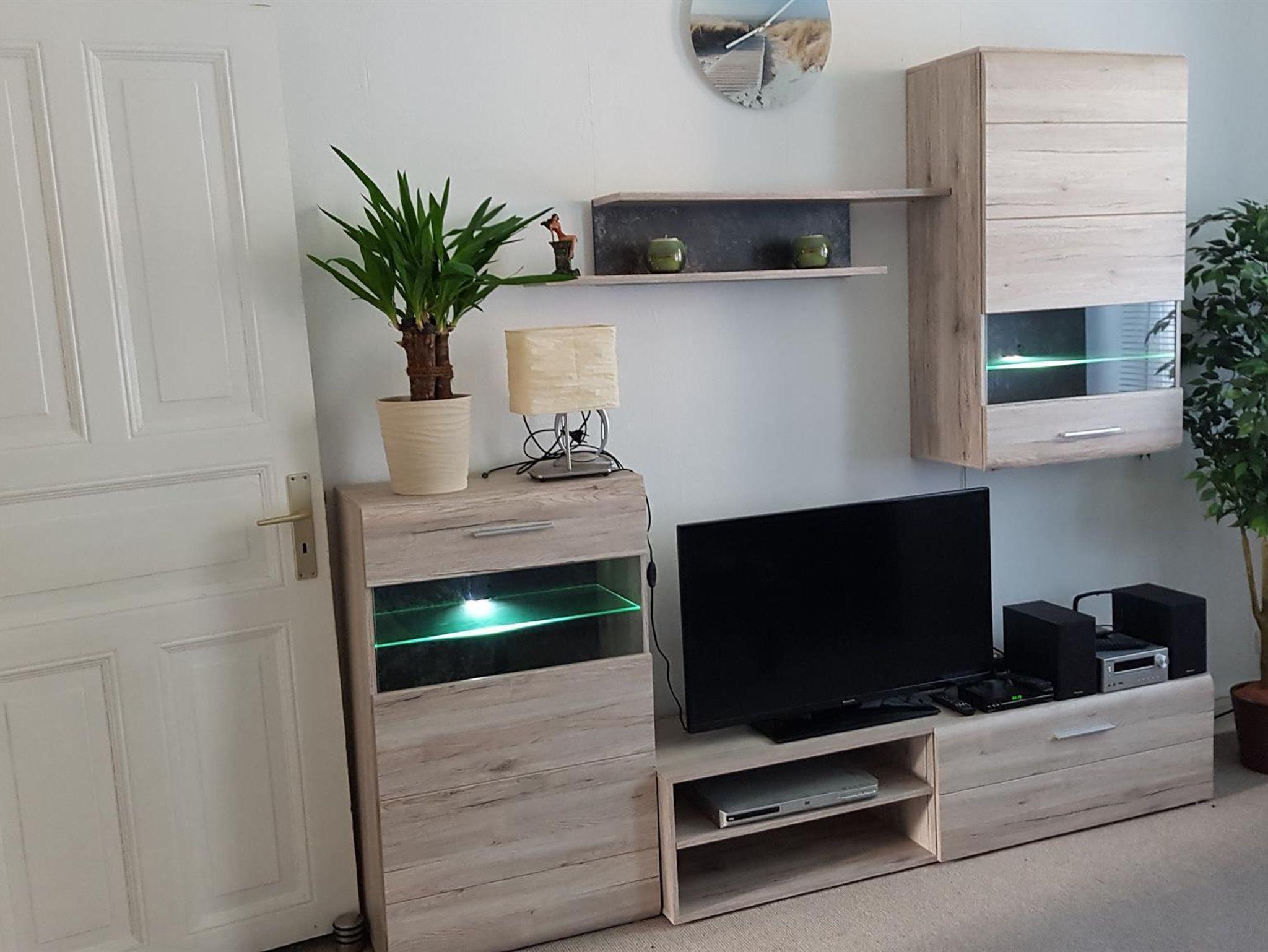 Im Wohnzimmer steht eine Schlafcouch für zwei Personen zur Verfügung, außerdem neben einem TV-Gerät (HD) eine Stereoanlage mit DVD-CD-Player.