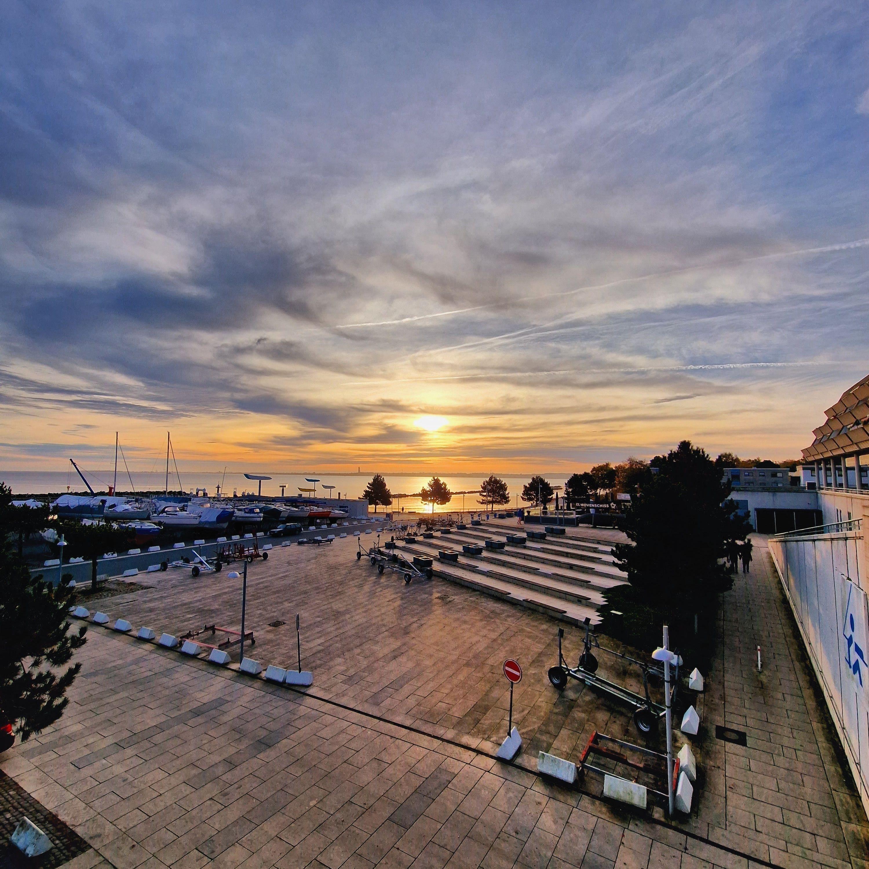Modernes Apartment in Kiel mit Meerblick, Balkon und privatem Parkplatz direkt an der Promenade.