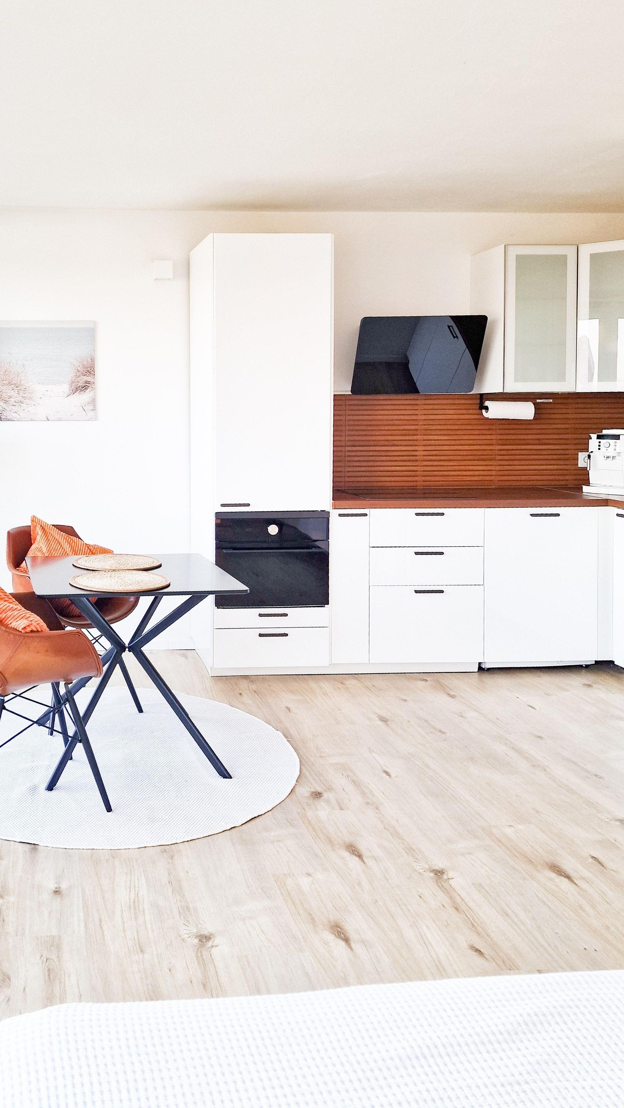 Das Apartment befindet sich im dritten Stock, garantiert dem Gast Ruhe und einen unverbaubaren Blick über Felder und den Fuhlsee. Durch die große Fensterfront wirkt das Apartment besonders hell und freundlich .
