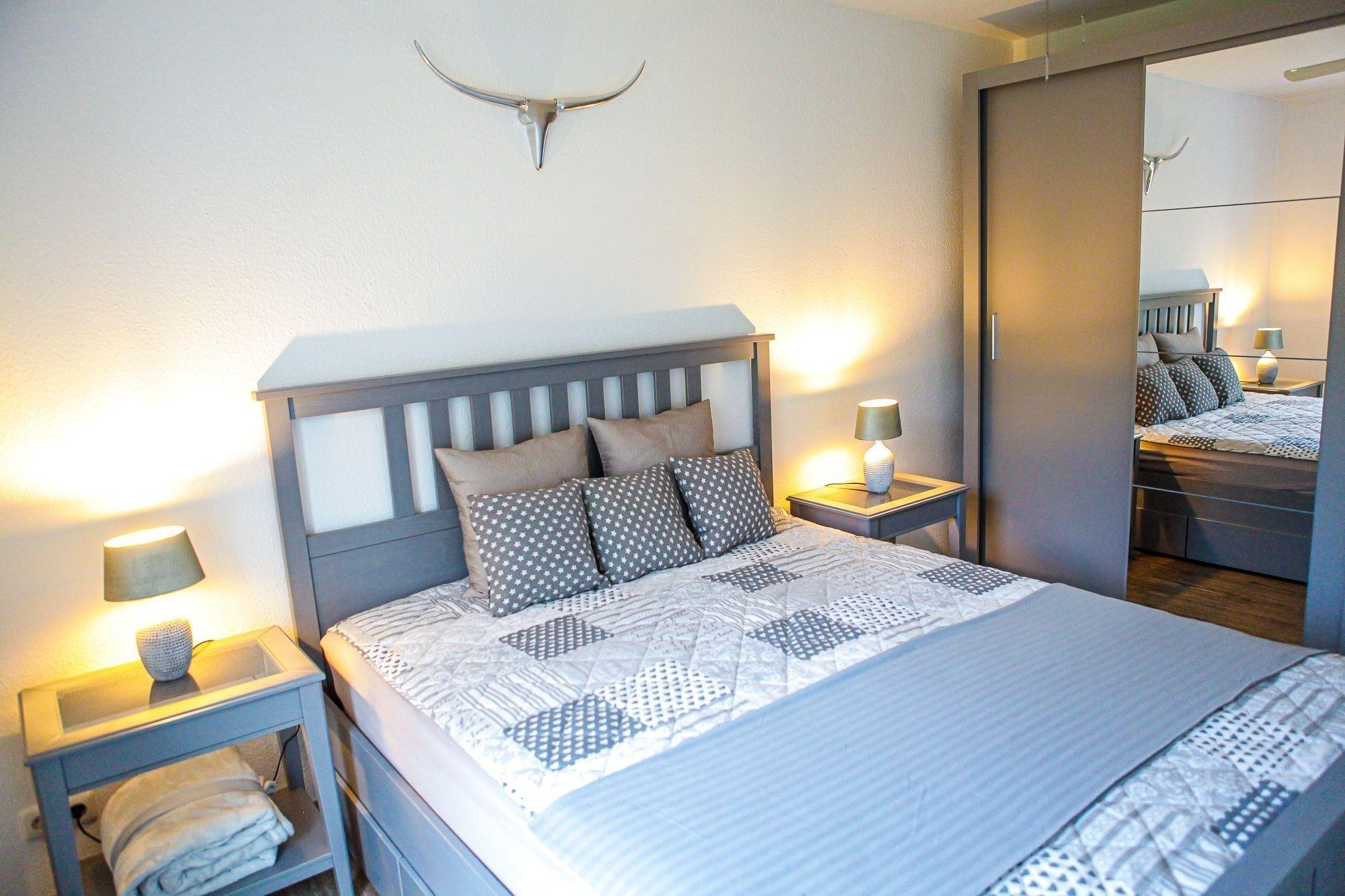 Das Schlafzimmer verfügt über einen großen Spiegel-Kleiderschrank und ein Bett von 160x200 Metern. Zwei weitere Personen (nach Ankündigung) können auf dem Schlafsofa übernachten.