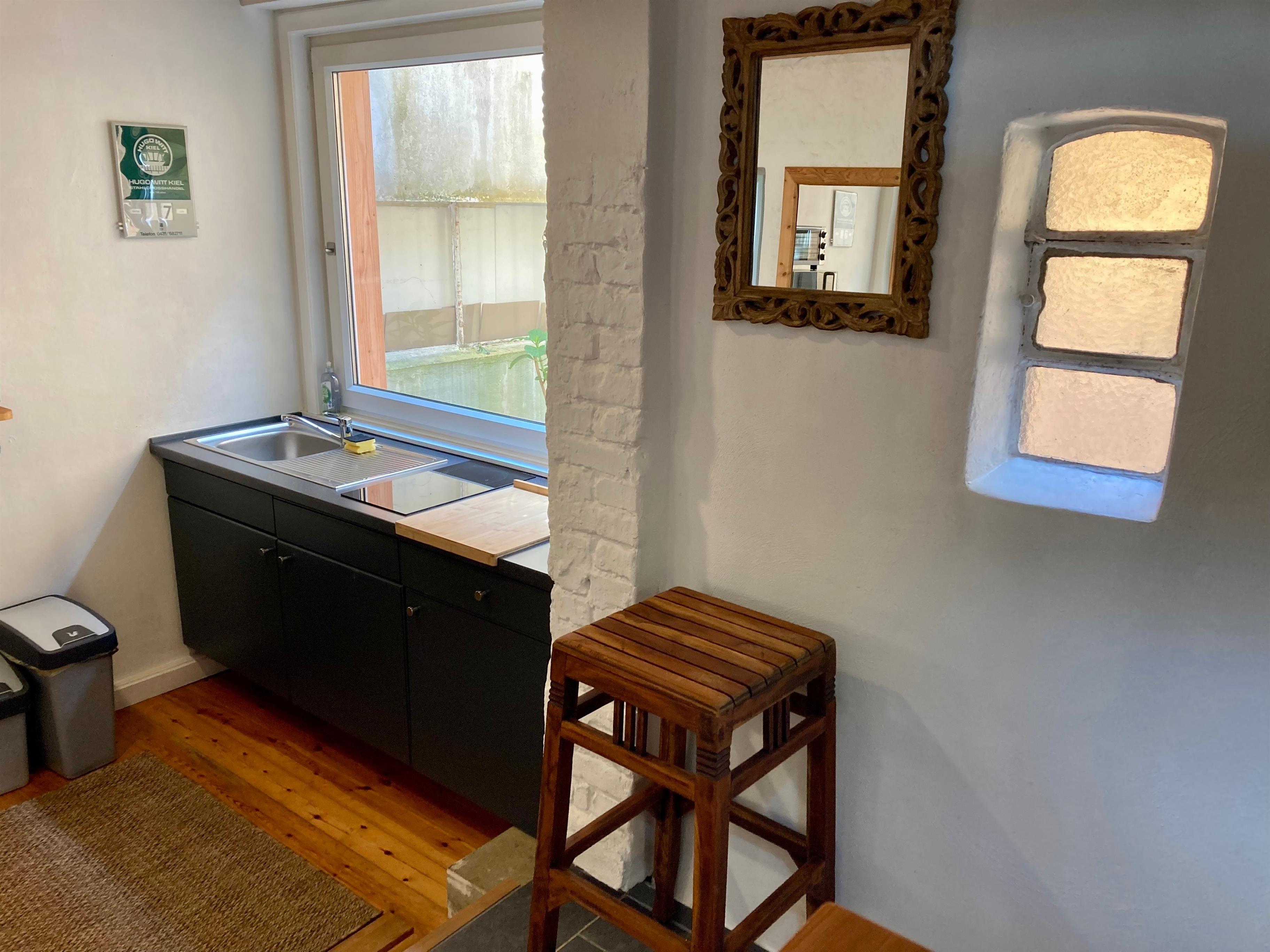 Ein 2. Zimmer kann auch als Schlaf-/Arbeitszimmer genutzt werden. Badezimmer ca. 7 m² mit Duschbad und Badewanne. Eine kleine Küche mit Ceran, Ofen, Grill