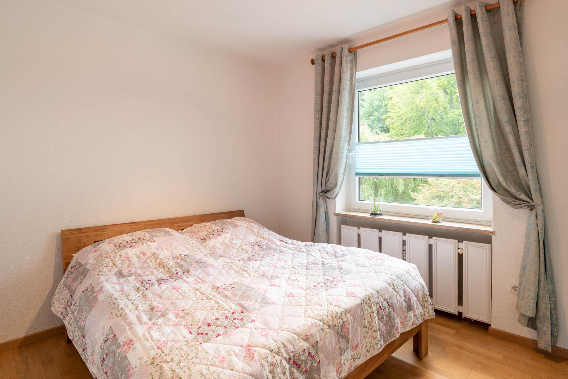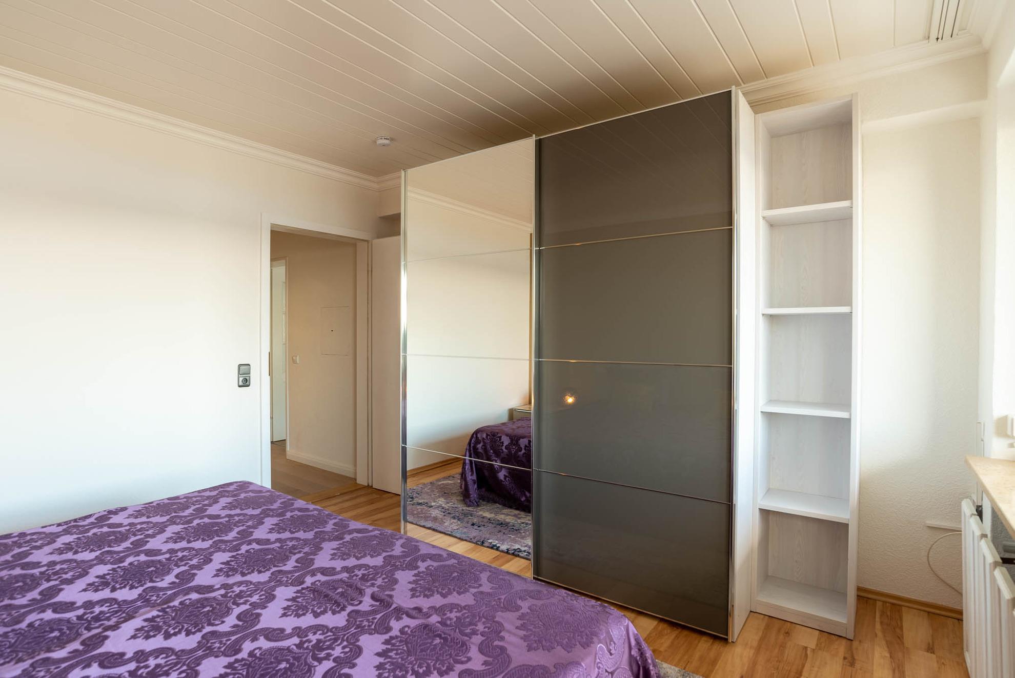 In den zwei separaten Schlafzimmern finden Sie jeweils einen Schiebtürenkleiderschrank und ein Bett in den Maßen 180x200cm bzw. 160x200cm mit Nachtschränken. Das eine Schlafzimmer grenzt an den Balkon und bietet einen tollen Ausblick auf die Kieler Förde. Das andere Schlafzimmer ist ruhig in den Hinterhof gelegen und profitiert mit einem Blick ins Grüne.