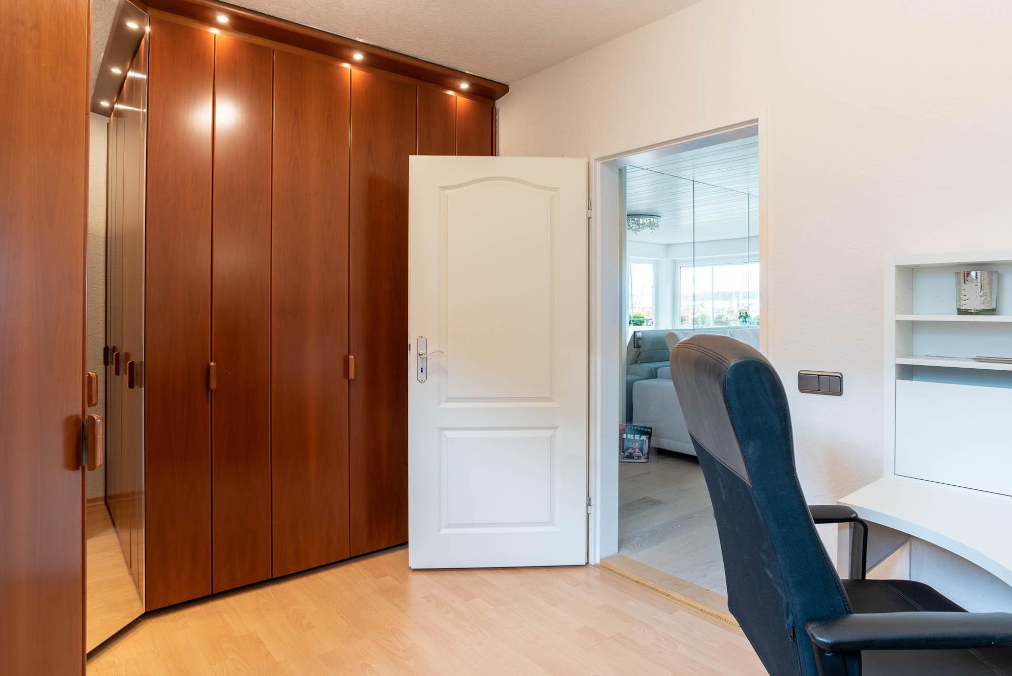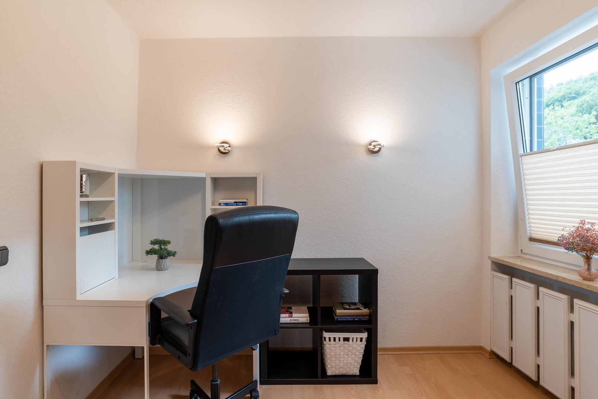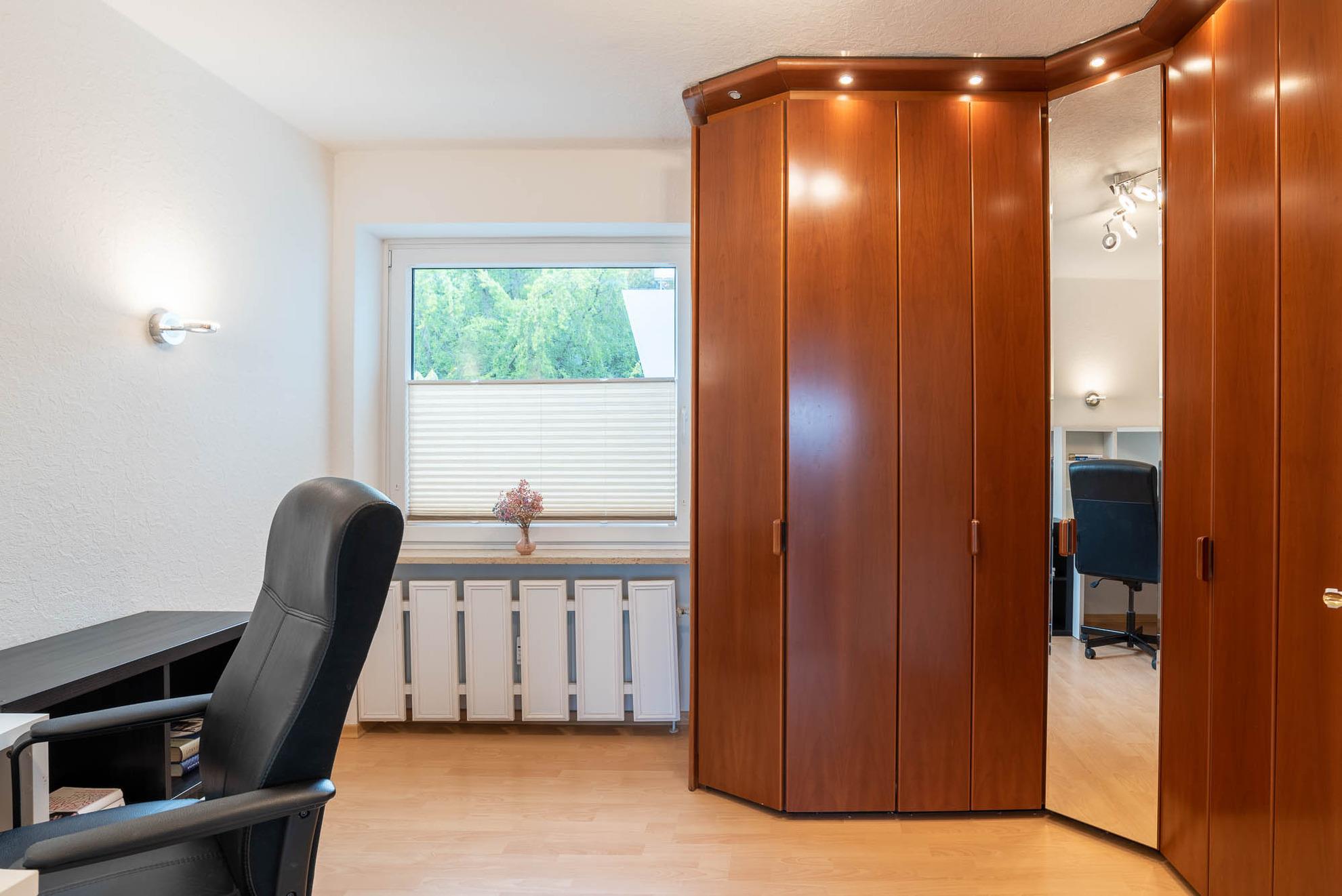Abgehend vom Wohnzimmer befindet sich ein weiterer Raum, welcher als kleines Büro eingerichtet ist, mit großem Kleiderschrank.