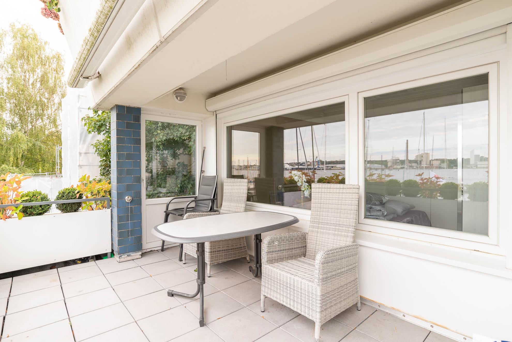 Der gemütliche überdachte Balkon (Südost-Lage) bietet genügend Platz, um auch bei Regen die Boote und Schiffe zu beobachten. Er ist ausgestattet mit einem Gartentisch und insgesamt vier Gartenstühlen. Darüber hinaus kann der überdachte Anteil des Balkons bei Bedarf mit Wärmestrahlern beheizt werden. Auch eine Markise steht Ihnen zur Verfügung.
