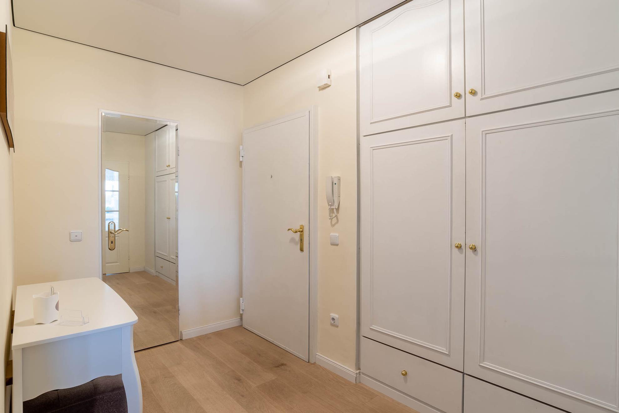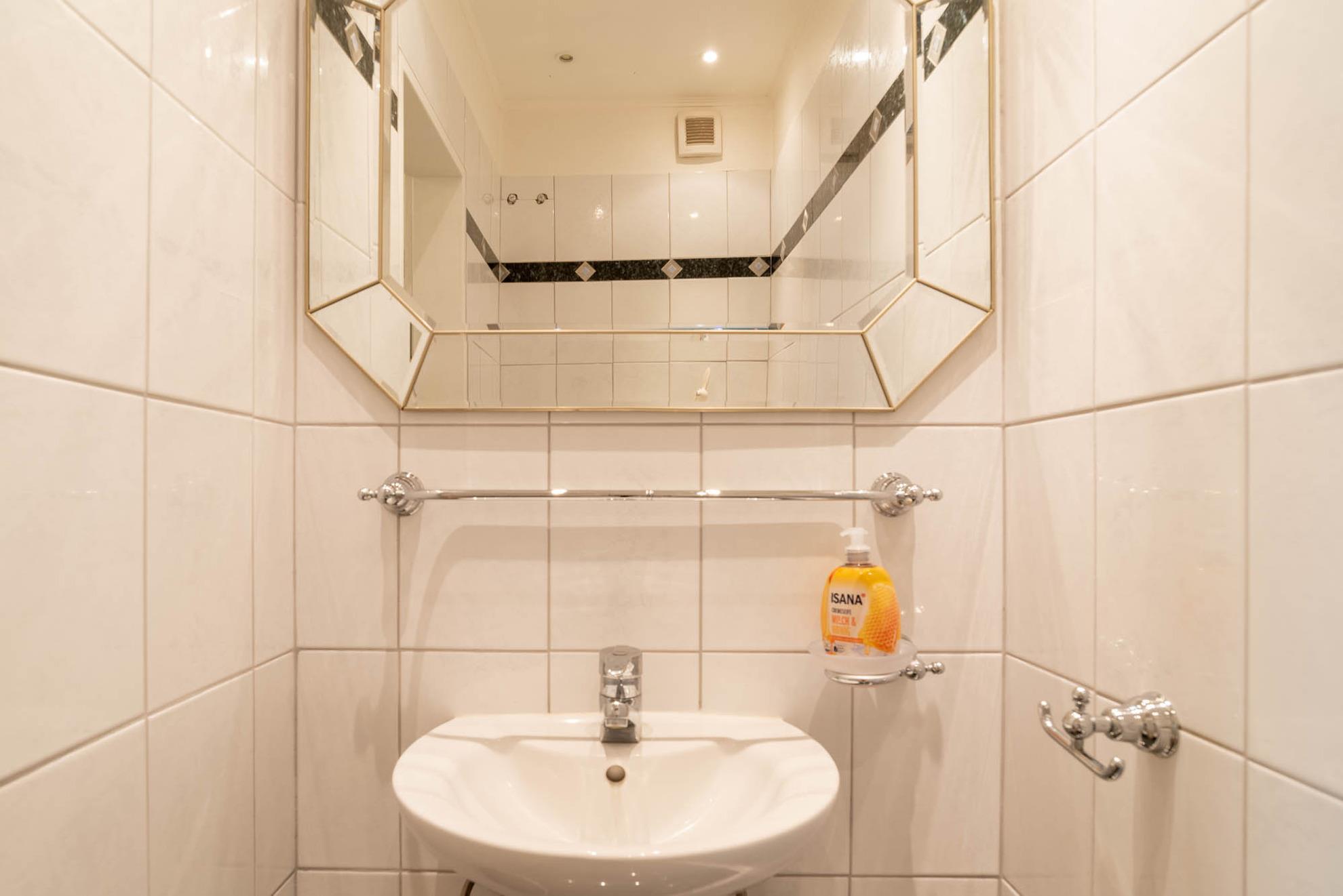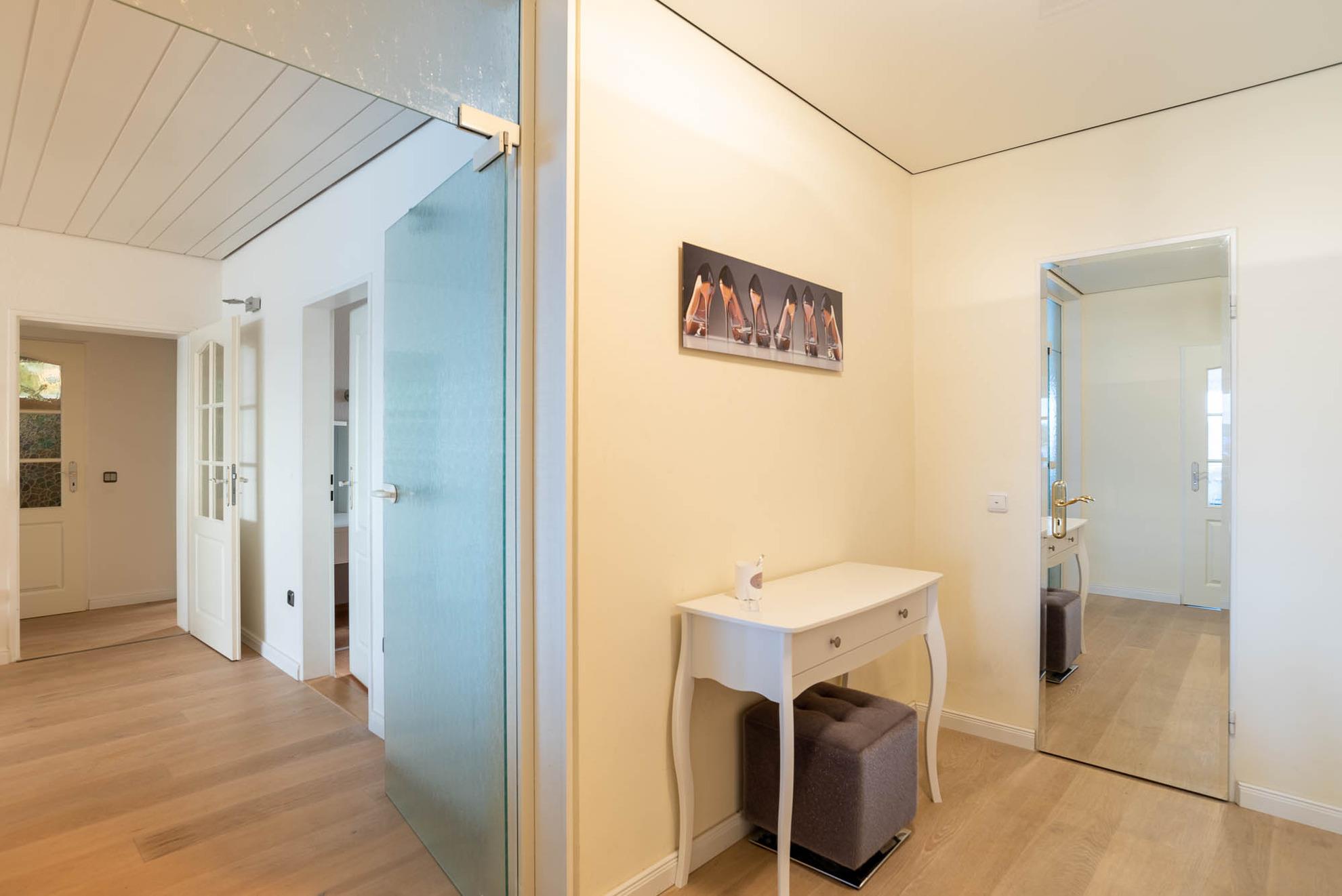 Das Gäste-Badezimmer (WC und Waschbecken) befindet sich am Eingang im Flur des Apartments. Im Flur befindet sich zudem ein großer Garderobenschrank.