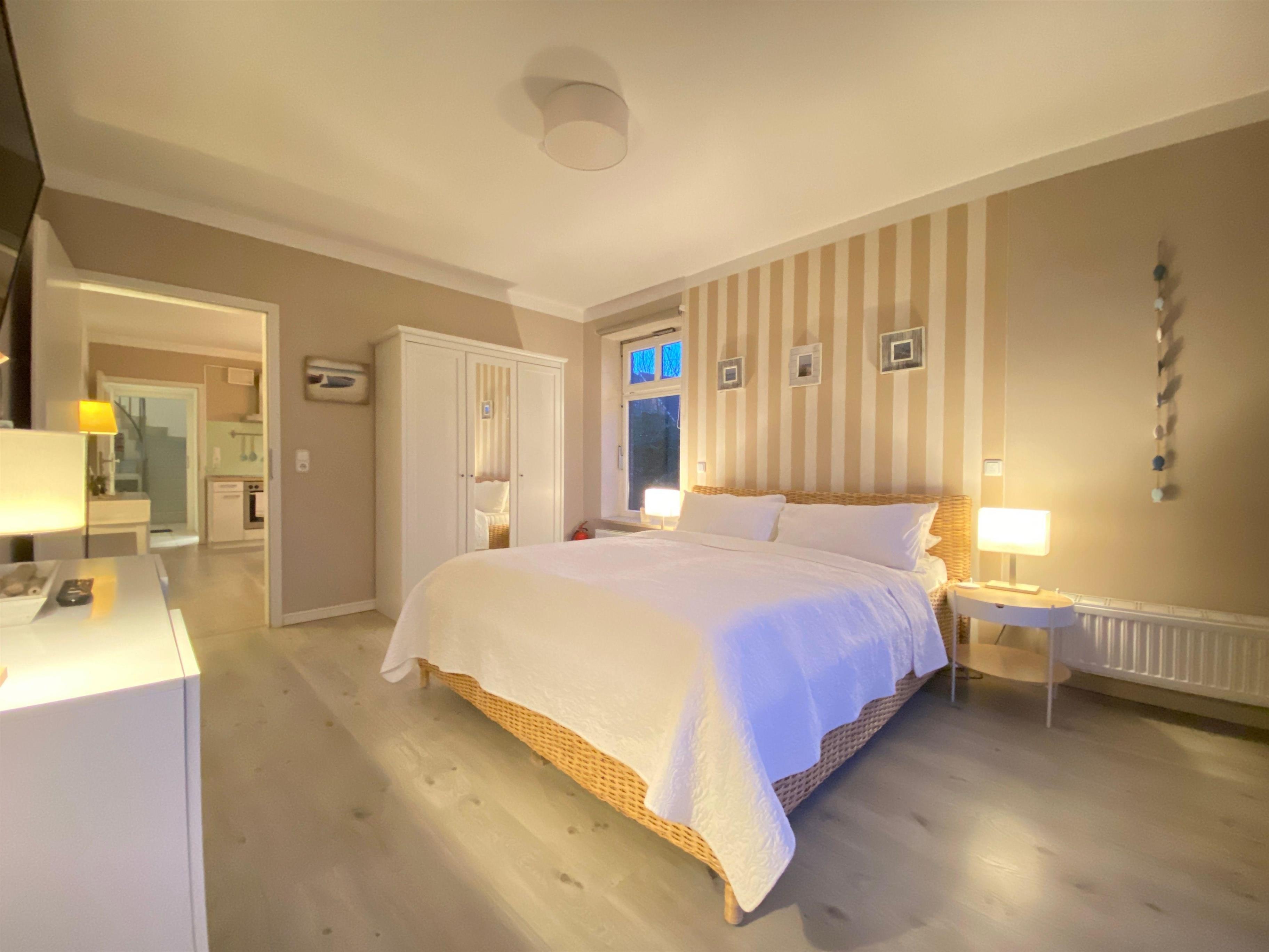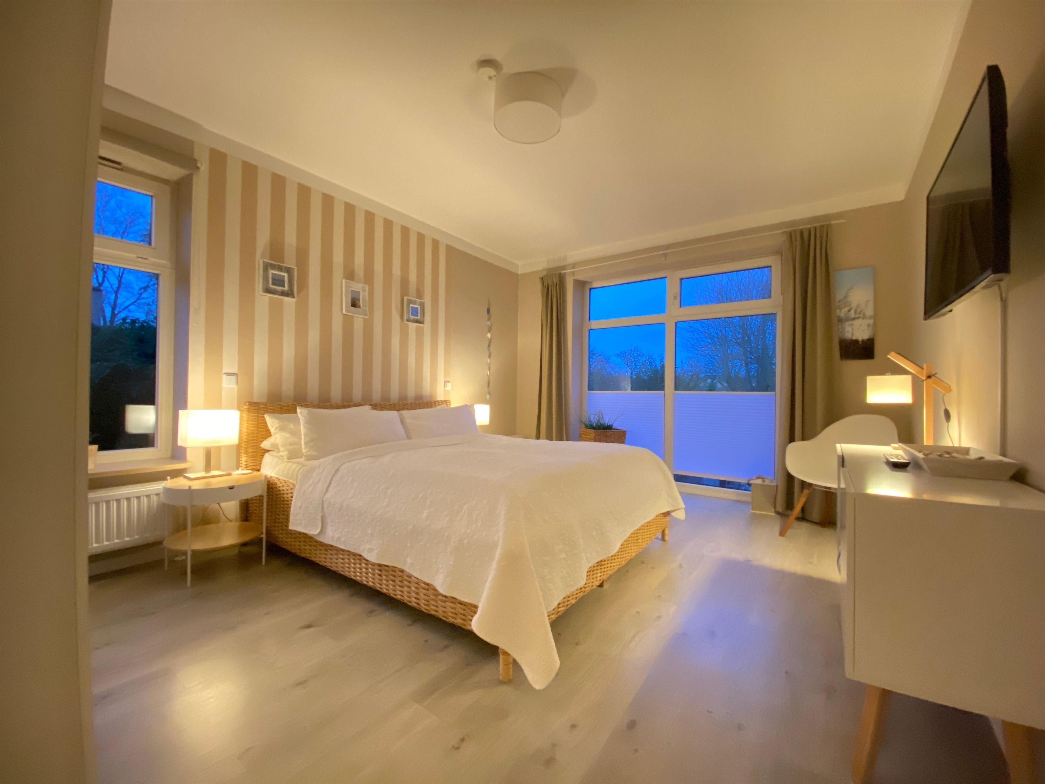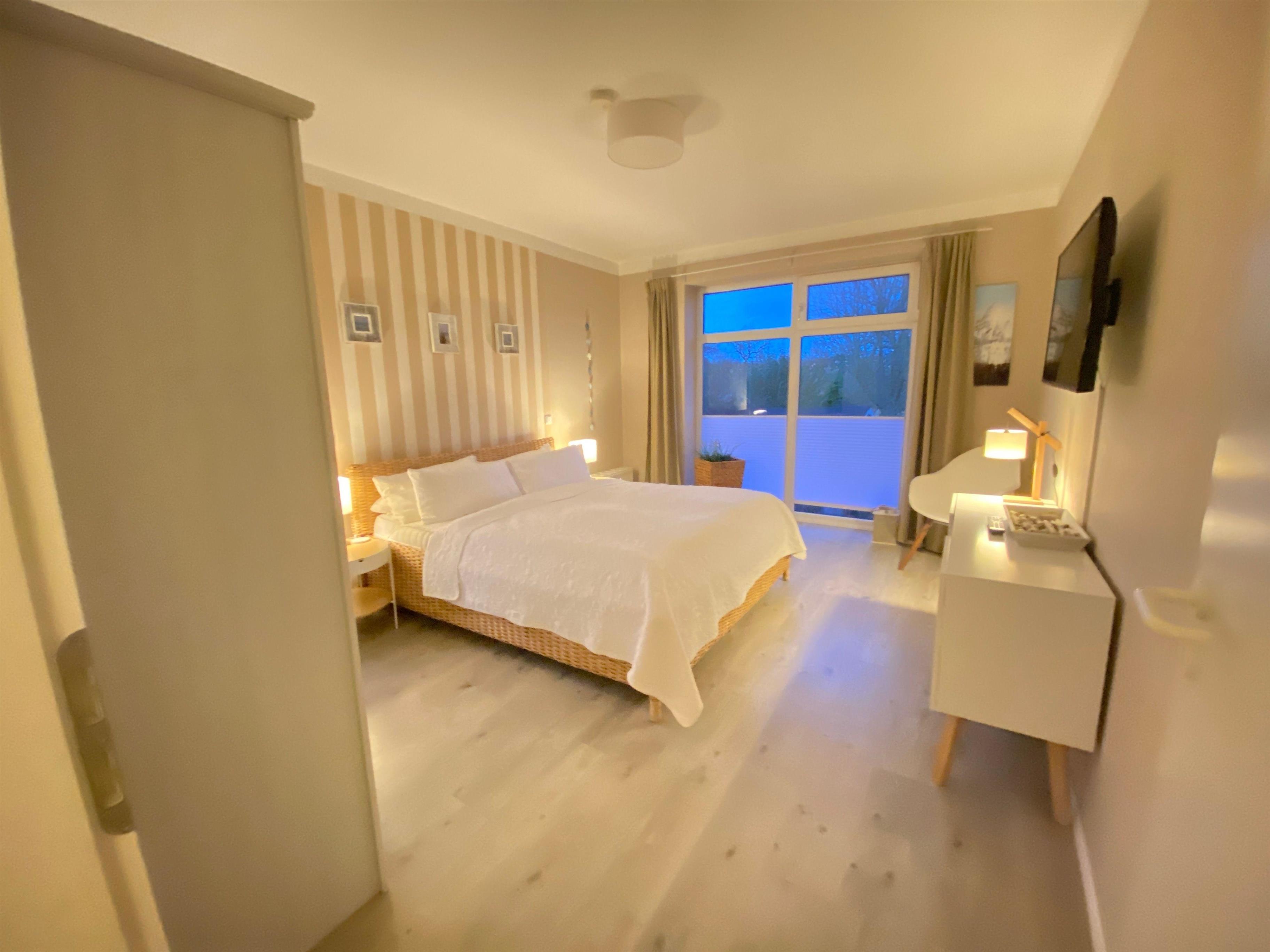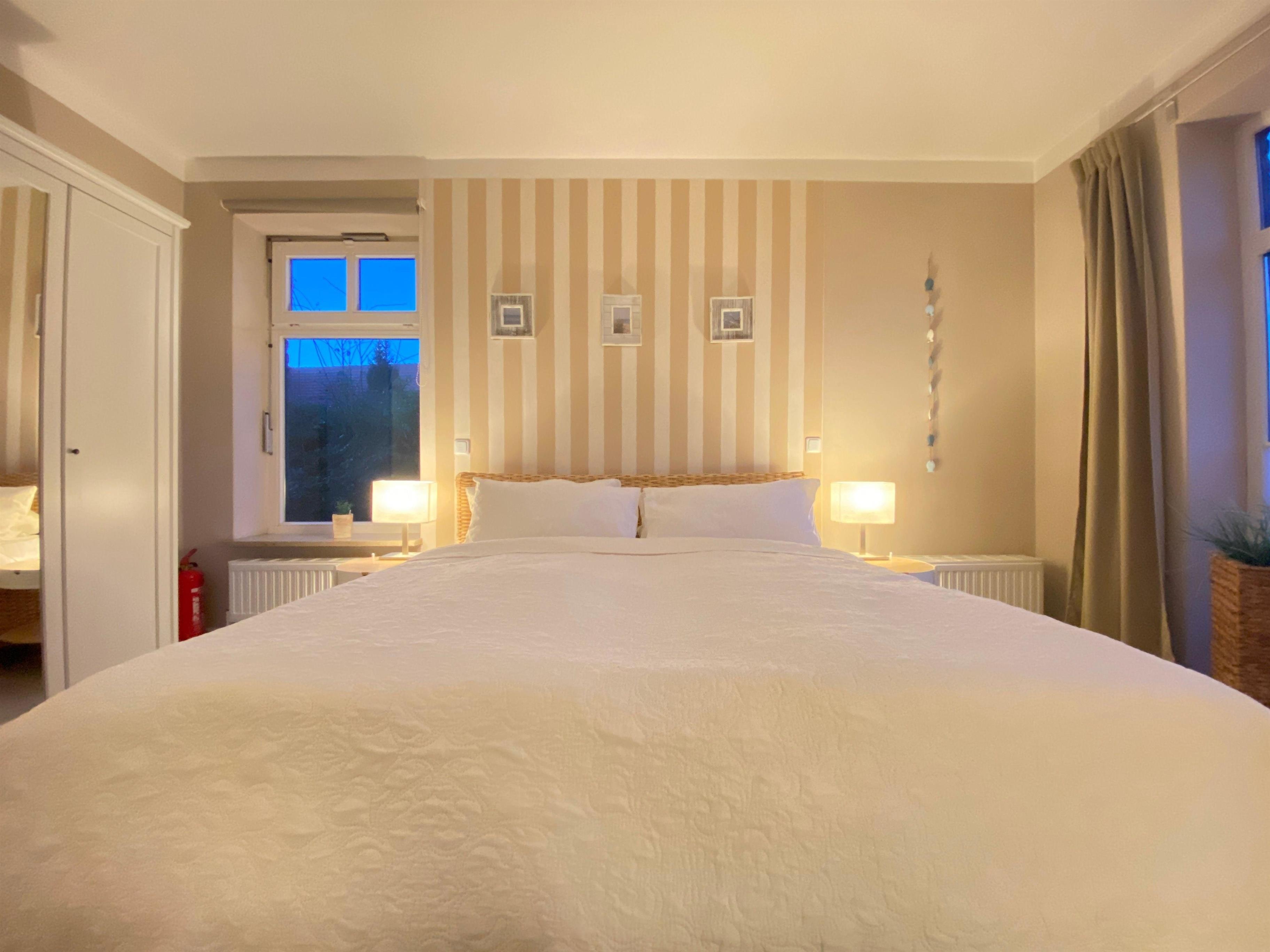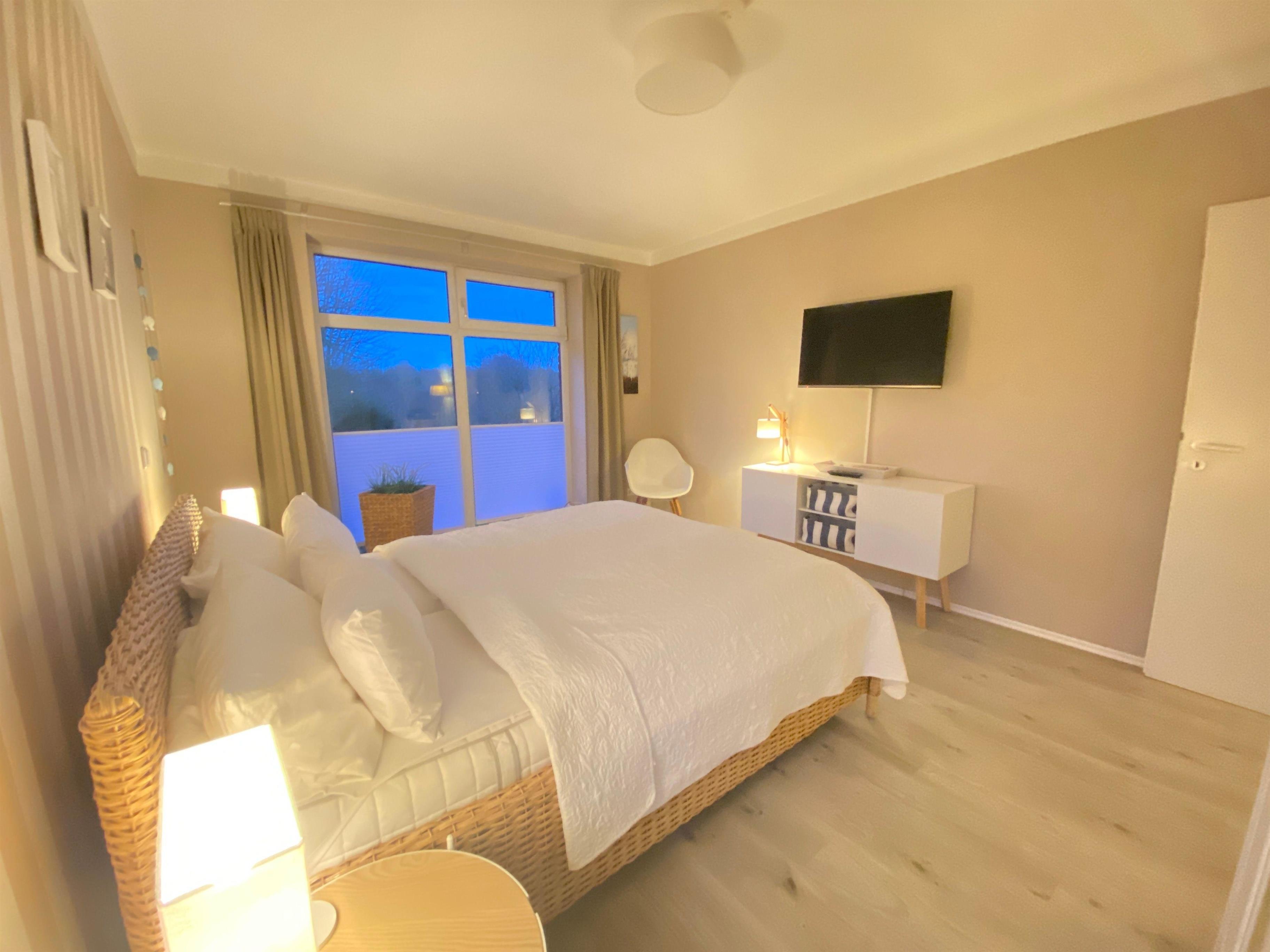 Die Wohnung ist modern und hell im maritimen Stil eingerichtet.
