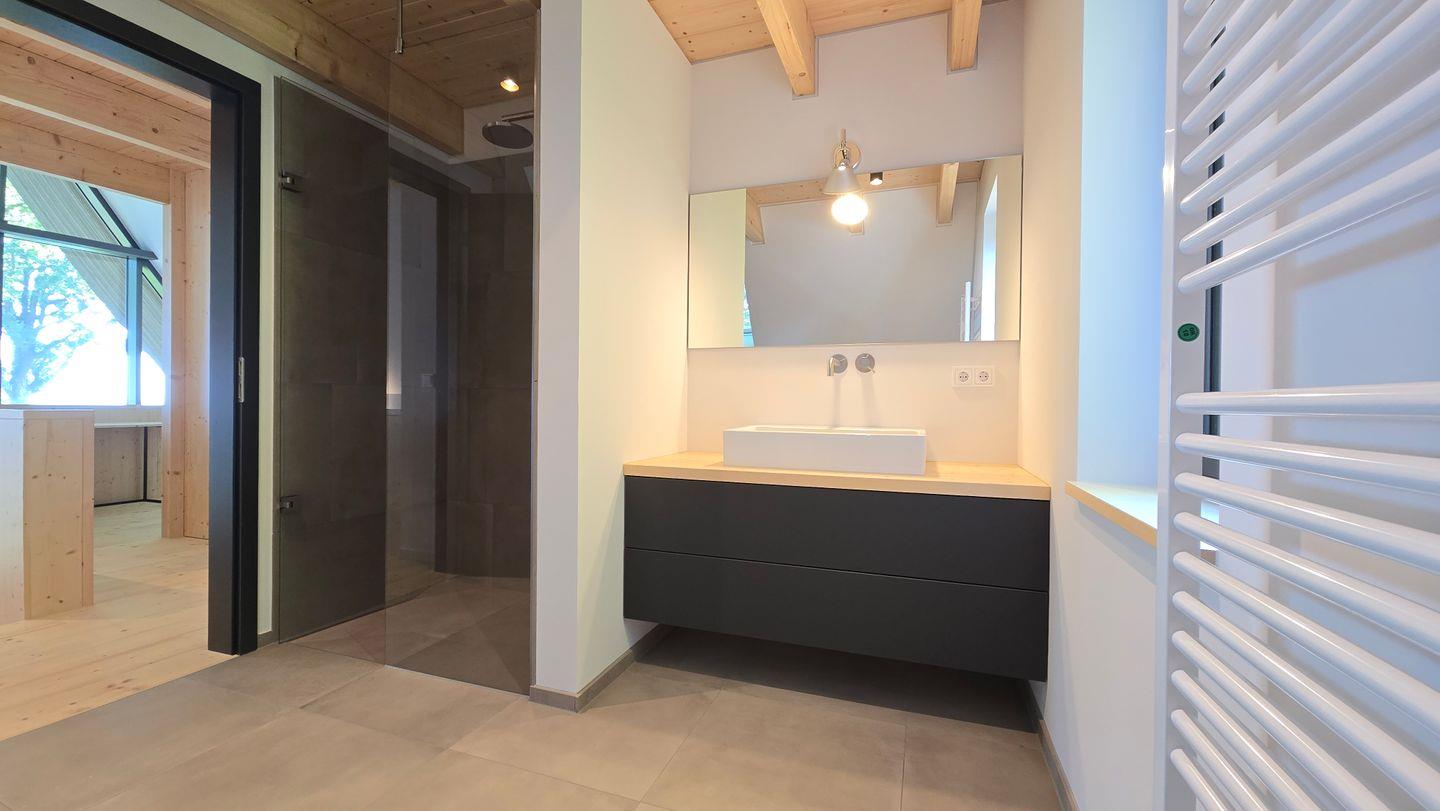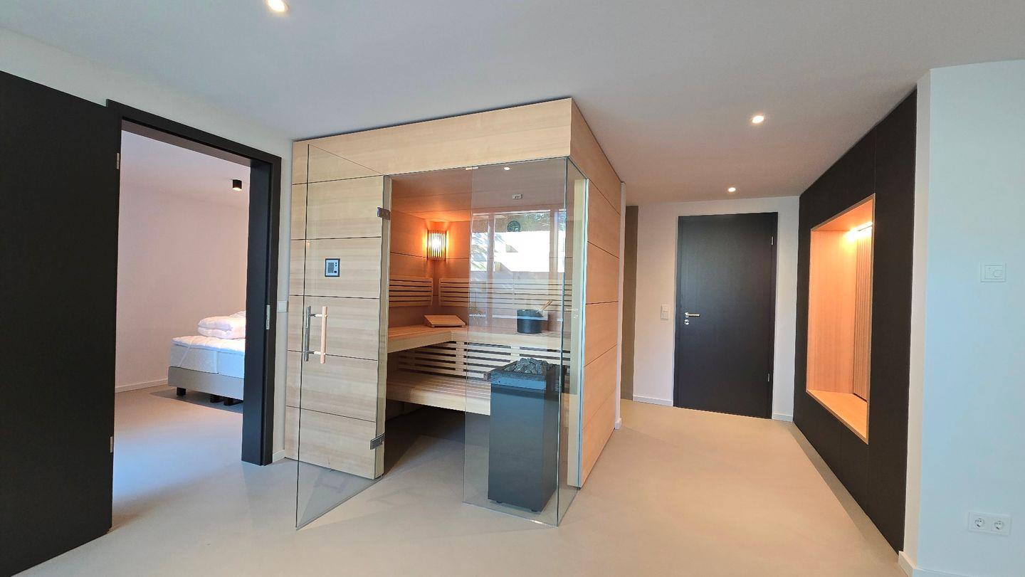 Im Souterrain befindet sich neben dem 2. Schlafzimmer die Sauna, sowie eine zusätzliche, ebenerdige und luxuriöse Regendusche.