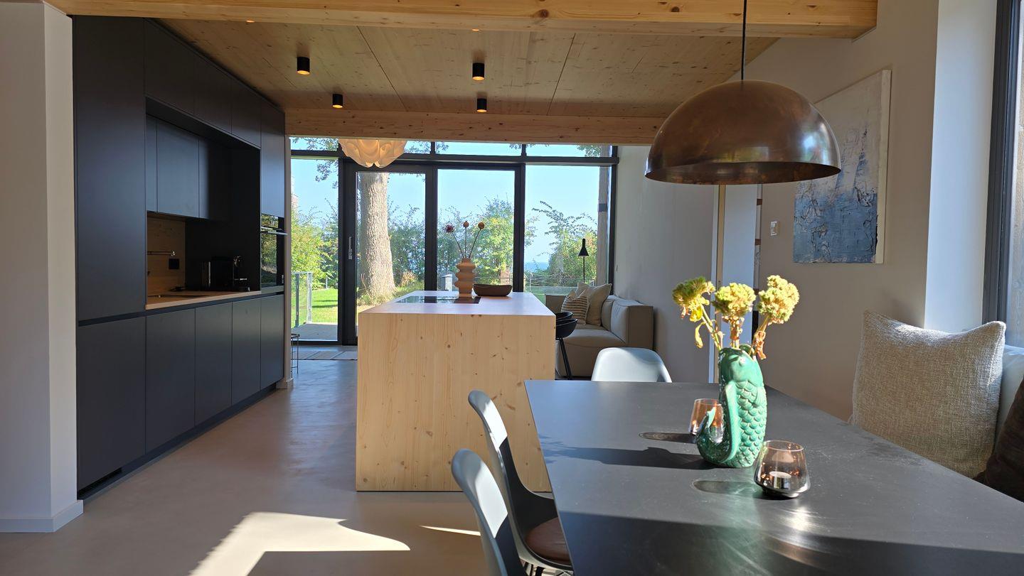 Das 2024 fertiggestellte Niedrigenergiehaus vereint Offenheit und Privatsphäre - und dazu einen traumhaften Meerblick auf die Ostsee. Bis zu 6 Personen sind hier herzlich Willkommen. Das Domizil wurde bis ins kleinste Detail geplant und umgesetzt, was sich durch speziell angefertigte Einrichtungsgegenstände, hohe Decken und eine durchgängige Fensterfront Richtung Meer ausdrückt.