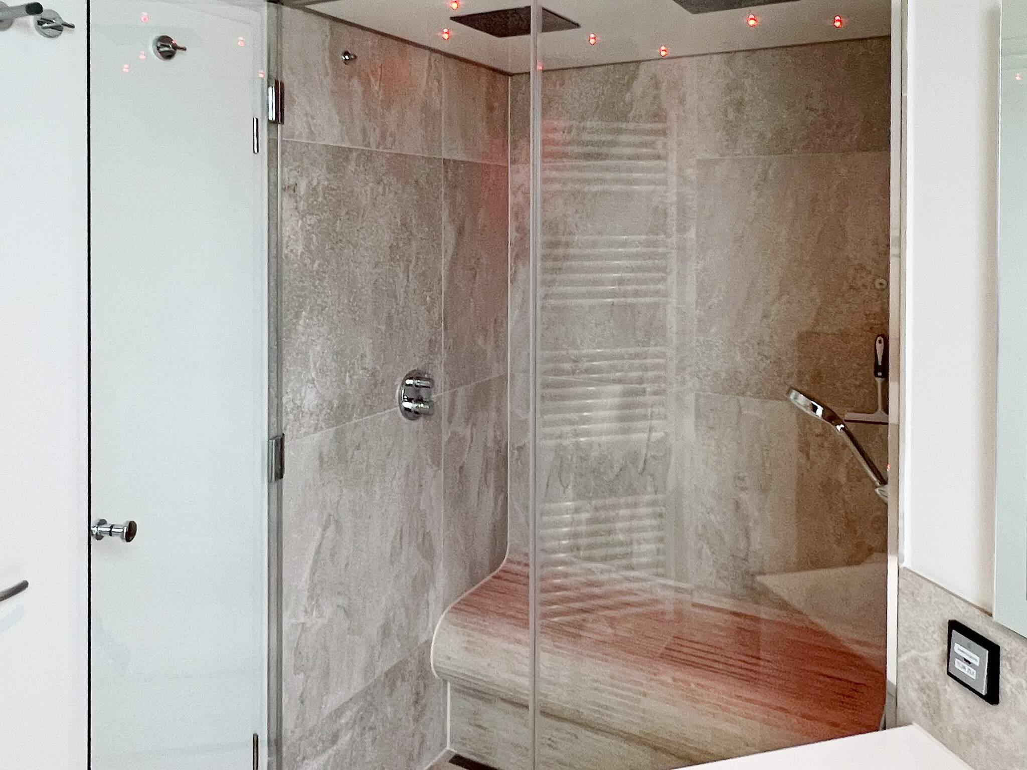 Bad: WC, Waschb., Dusche, Dampfkabine, Fußbodenheiz.