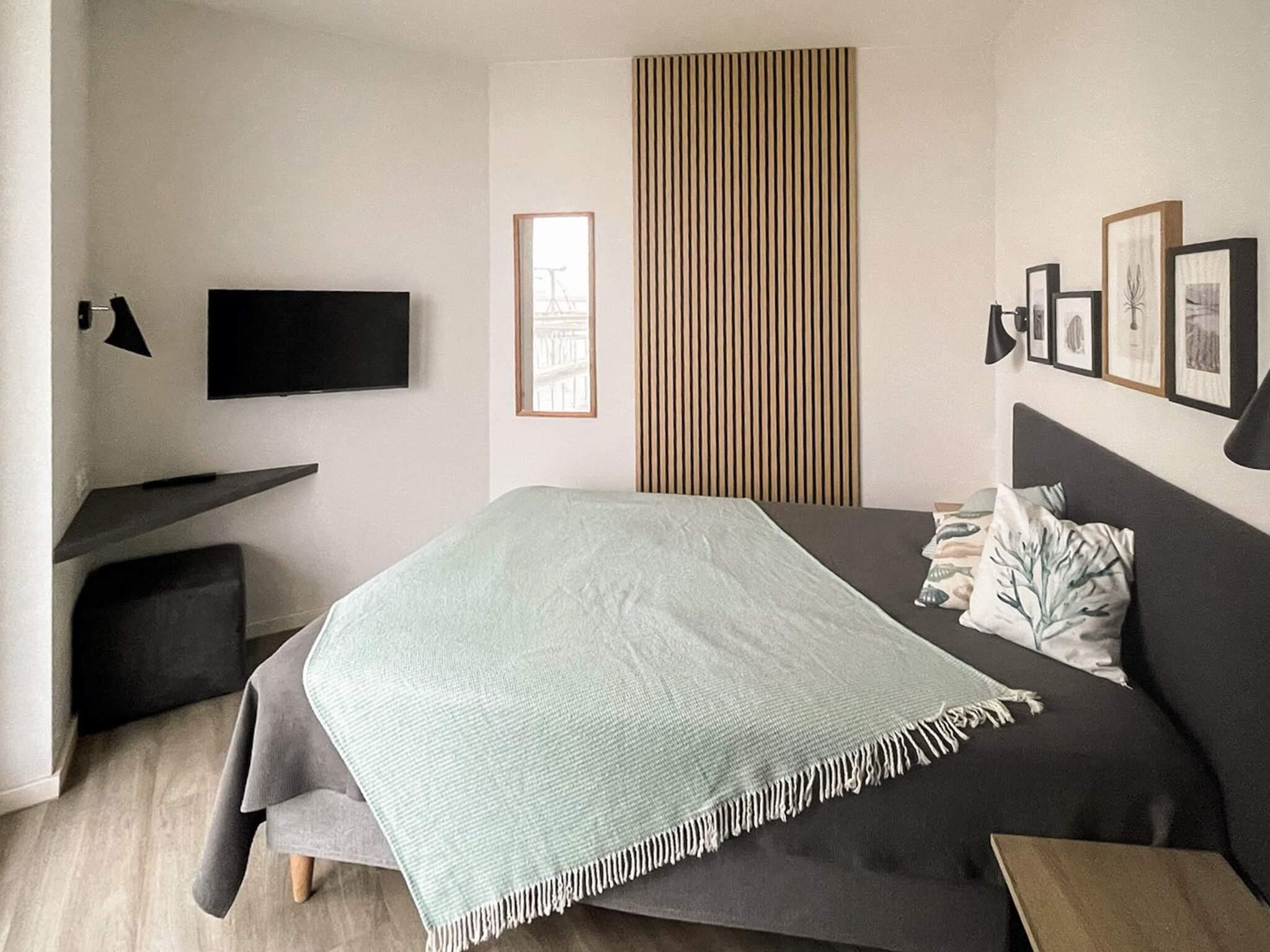 Die Wohnung überzeugt durch ihren offenen, hellen Wohn- und Essbereich mit direktem Zugang ins Freie. Die gut zugängliche Küchenzeile ist mit einem modernen Induktionskochfeld ausgestattet und lädt zum gemeinsamen Kochen ein. Für besondere Wohlfühlmomente sorgen Kerzen im dekorativen Kamin, die bei Ihrer Ankunft bereits für Sie bereitstehen. Zwei gemütliche Schlafzimmer bieten erholsamen Schlaf: Eines davon ist mit einem hochwertigen Boxspringbett (140x200 cm), das andere mit einem Doppelbett (180x200 cm) ausgestattet. Beide Zimmer verfügen über Flachbildfernseher. Für entspannte Stunden am Abend stehen außerdem ein TV mit Blu-Ray-Player sowie eine Soundbar mit Bluetooth-Funktion zur Verfügung.