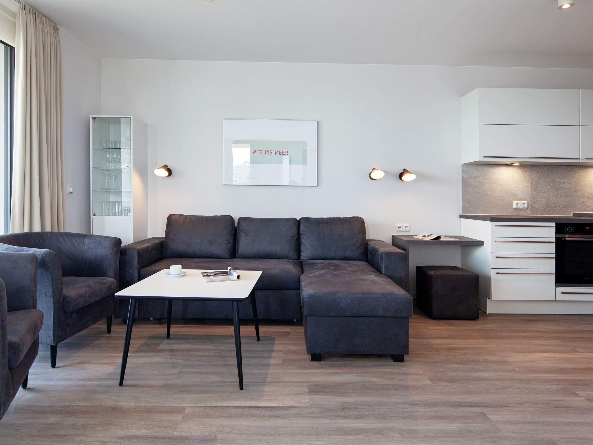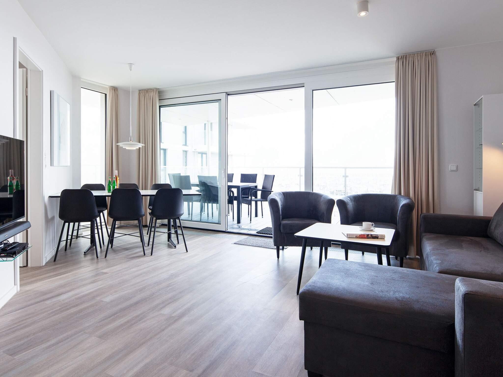 Modernes und komfortables Apartment mit Blick auf die Ostsee und den Yachthafen. Genießen Sie von morgens bis abends den wunderschönen Panoramablick auf die Ostsee. Das modern und komfortabel eingerichtete Apartment besteht aus einem offenen Wohnküchenbereich mit Essbereich und Ausgang zum großen Balkon/Terrasse. Darüber hinaus gibt es ein Badezimmer mit Regendusche mit Dampfbadfunktion und Fußbodenheizung. Ein Fernseher mit Blu-Ray-Player und eine Soundbar mit Bluetooth-Anschluss sorgen für Unterhaltung und ein Bioethanol-Kamin für gemütliche Wärme. Insgesamt gibt es drei Schlafzimmer, jedes mit einem Doppelbett und einem Flachbildfernseher.