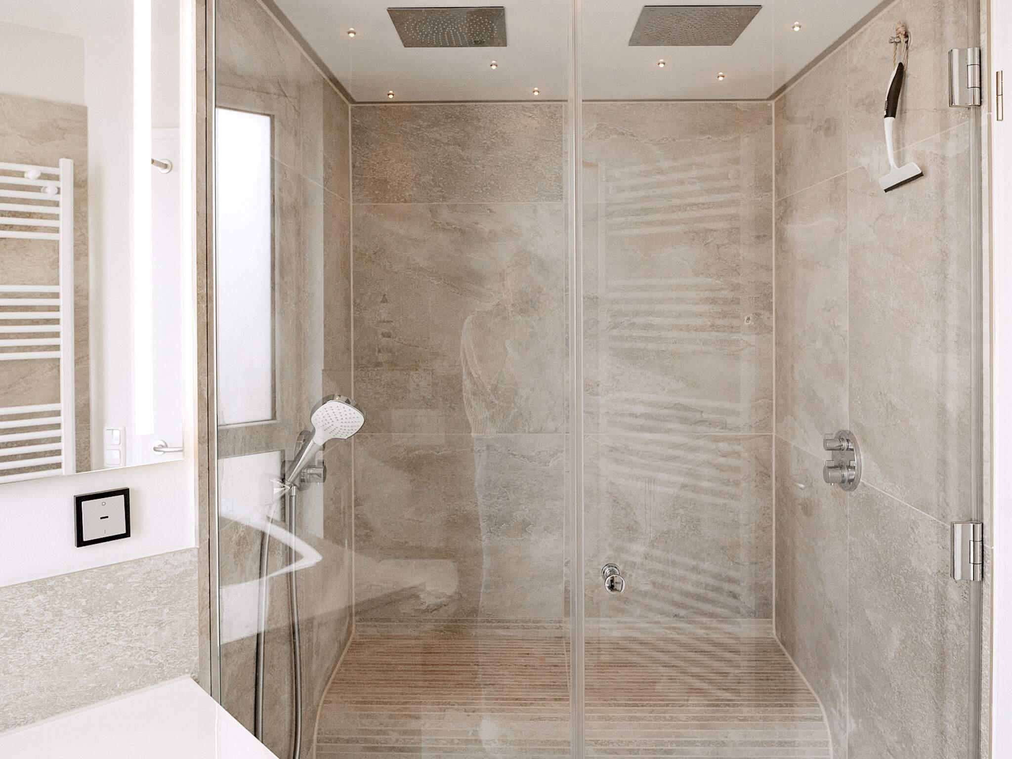 Bad: WC, Waschb., Dusche, Dampfkabine, Fußbodenheiz.