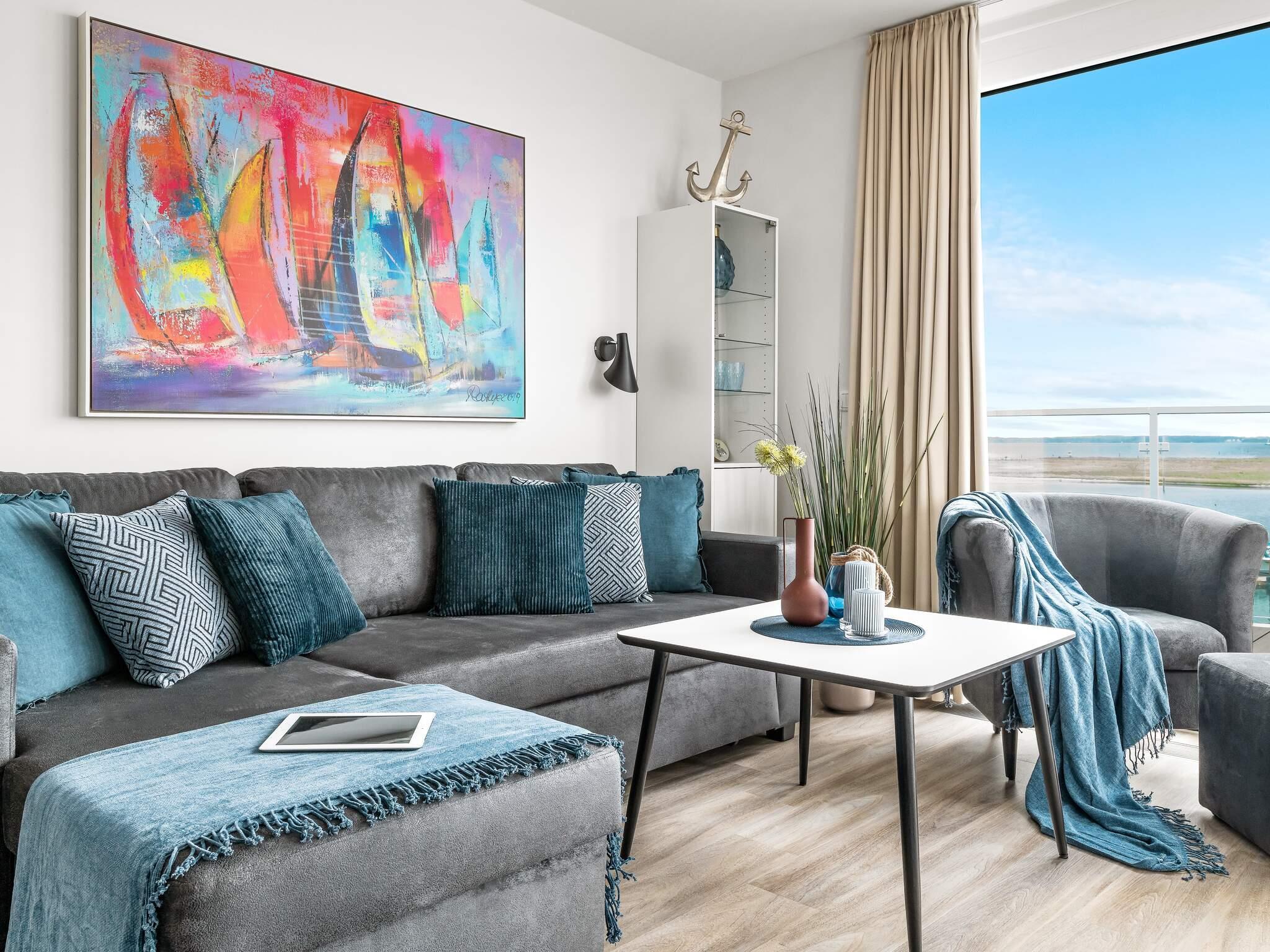 Im Inneren finden Sie einen hellen, offenen Küchen-Wohnbereich, der nahtlos in den Essbereich und auf den großen Balkon oder die Terrasse übergeht – der perfekte Ort für den Morgenkaffee, sonnendurchflutete Mahlzeiten oder abendliche Ausblicke auf den glitzernden Yachthafen. Die Innenräume sind modern und dennoch einladend, während das Badezimmer mit Regendusche, Dampfbadfunktion und Fußbodenheizung wie ein kleines Spa wirkt. Genießen Sie gemütliche Abende vor dem Bioethanol-Kamin oder versammeln Sie sich vor dem Fernseher mit Blu-Ray-Player und Bluetooth-Soundbar.
