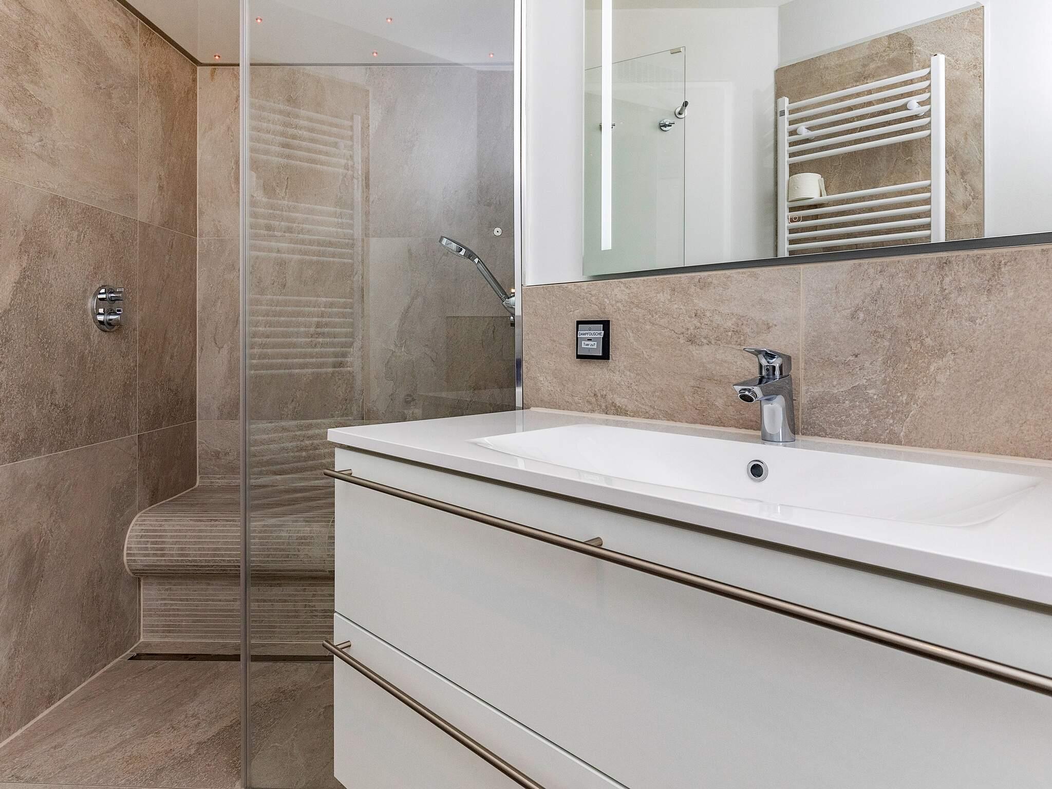 Bad: WC, Waschb., Dusche, Dampfkabine, Fußbodenheiz.