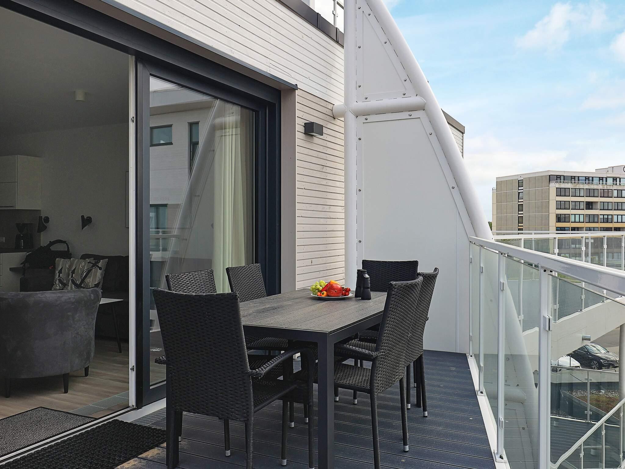 Dieser Rückzugsort mit Hafenblick verbindet modernes Wohnen mit einem Logenplatz für das Leben im Yachthafen und ist damit ein einladender Zufluchtsort für Ihren Urlaub an der Ostsee.